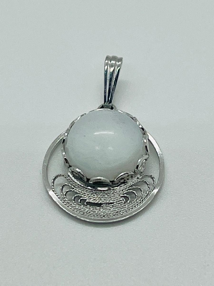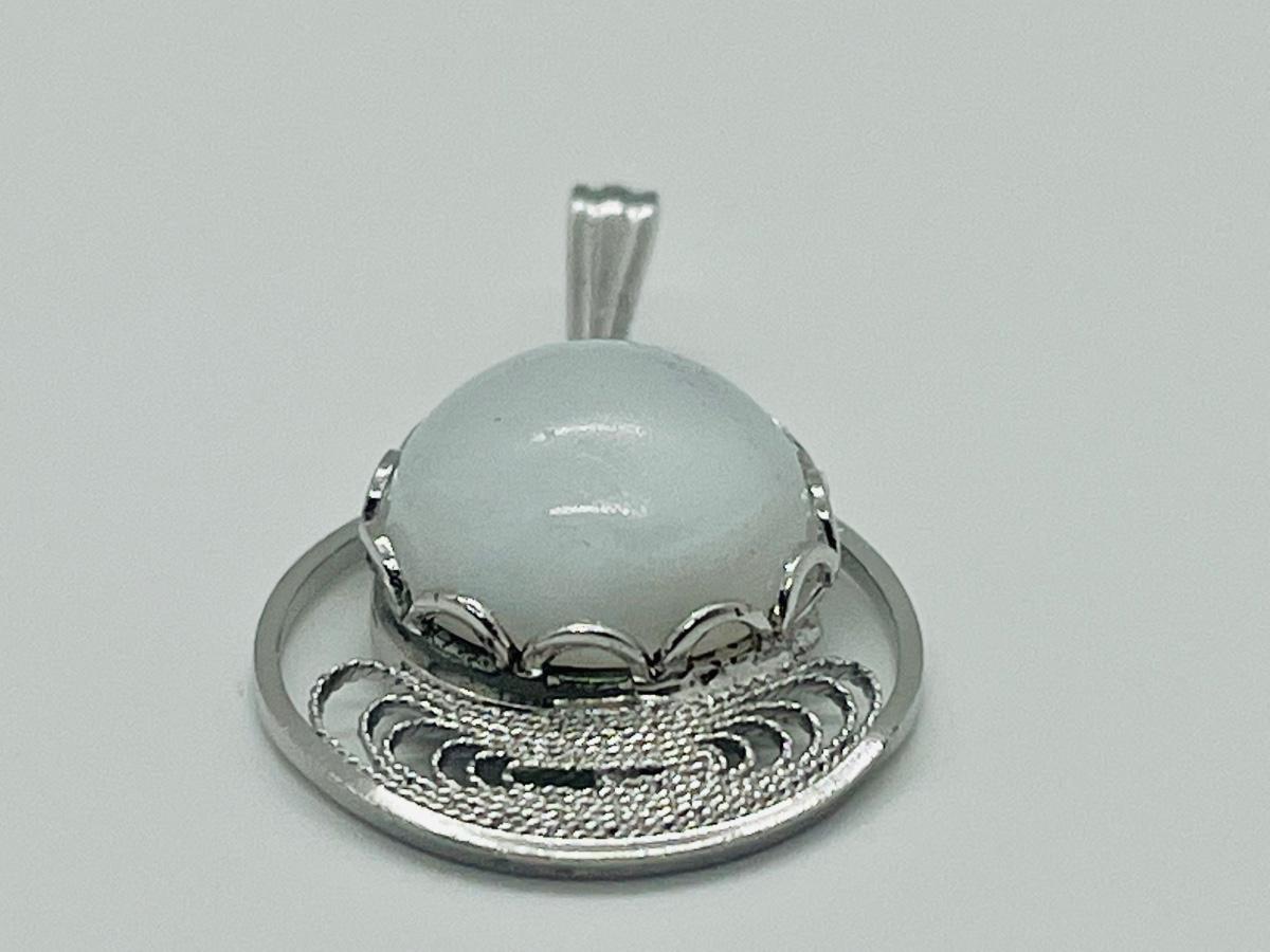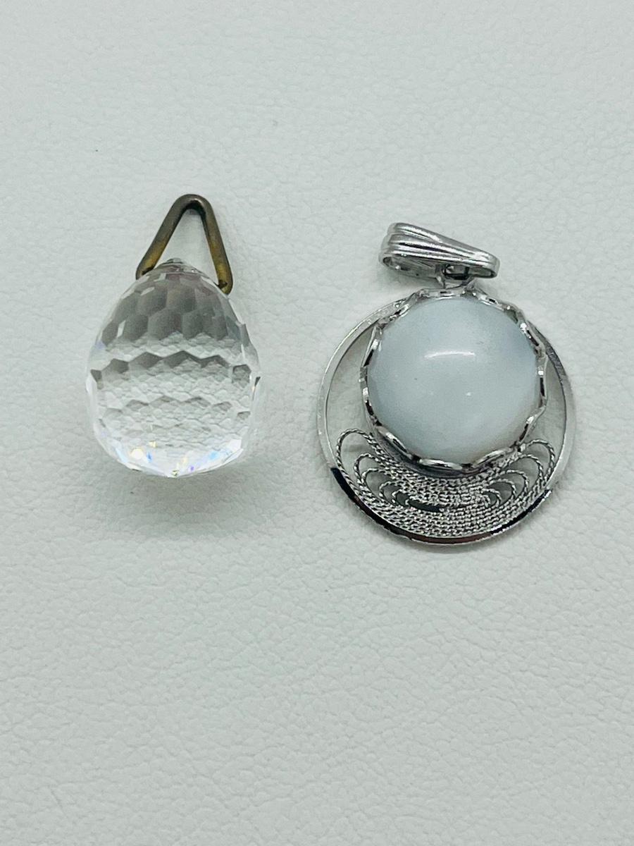 Two pendants one moonstone and silver the other is a crystal. The pictures show condition, measurements if taken, and what is included in the lot. Due to the large amount that we photograph and the time frame, we are not always able to take measurements. All items unless noted, are pre-owned and have been used, and are untested. Thank you