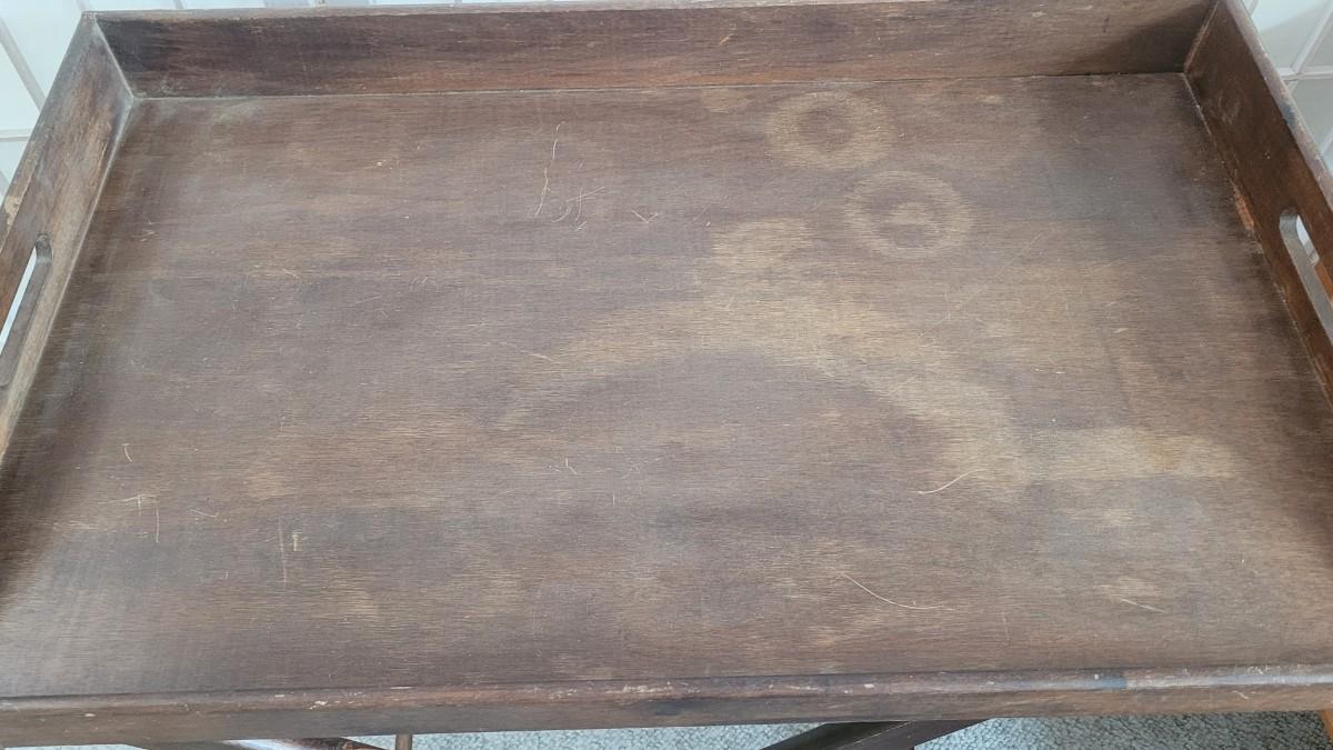 Removable Tray Desktop with Foldable stand. There is some discoloration (water rings ect).