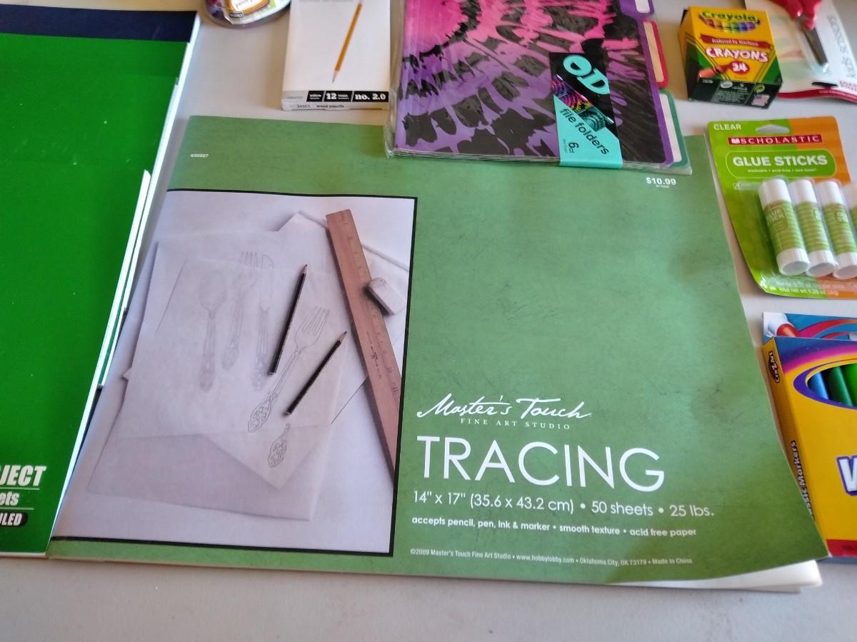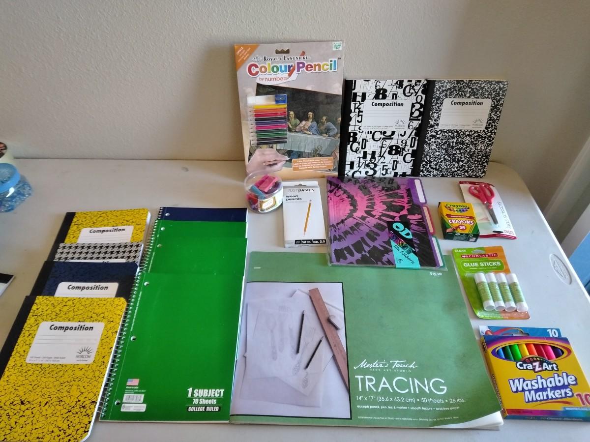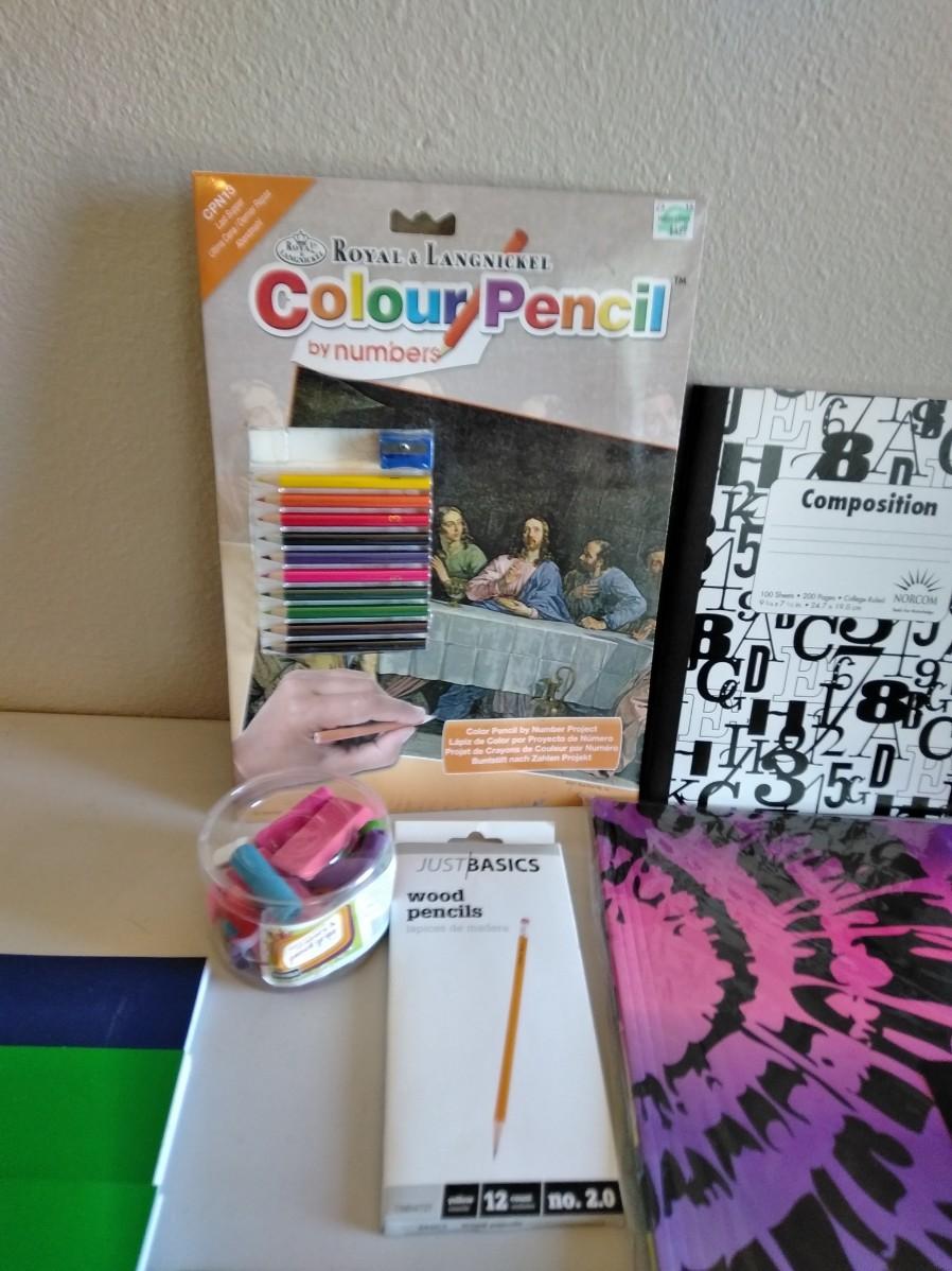 COLOR PENCIL LAST SUPPER CRAFT, NOTEBOOKS, TRACING PAPER, GLUE STICKS, COLORED PENCILS, CRAYONS, SCISSORS, AND MORE
