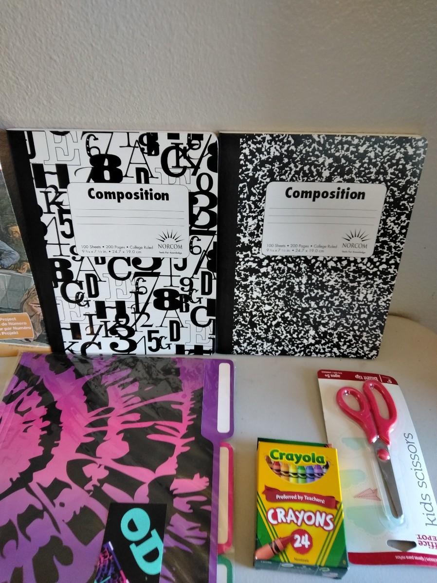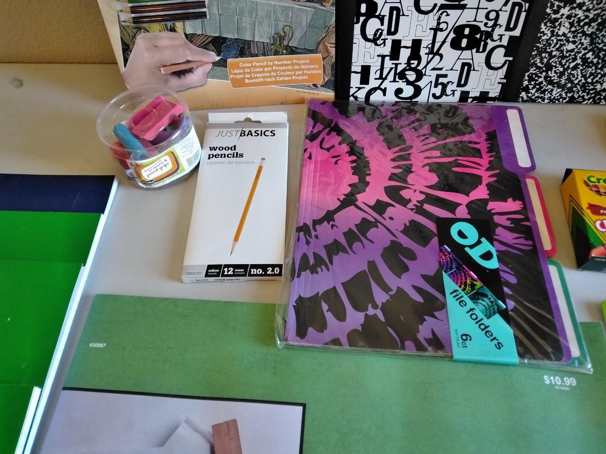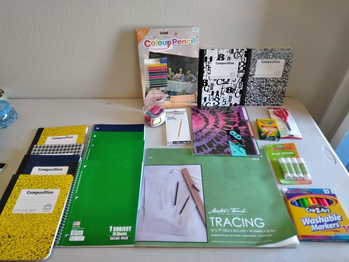 COLOR PENCIL LAST SUPPER CRAFT, NOTEBOOKS, TRACING PAPER, GLUE STICKS, COLORED PENCILS, CRAYONS, SCISSORS, AND MORE