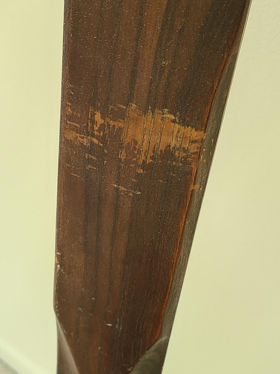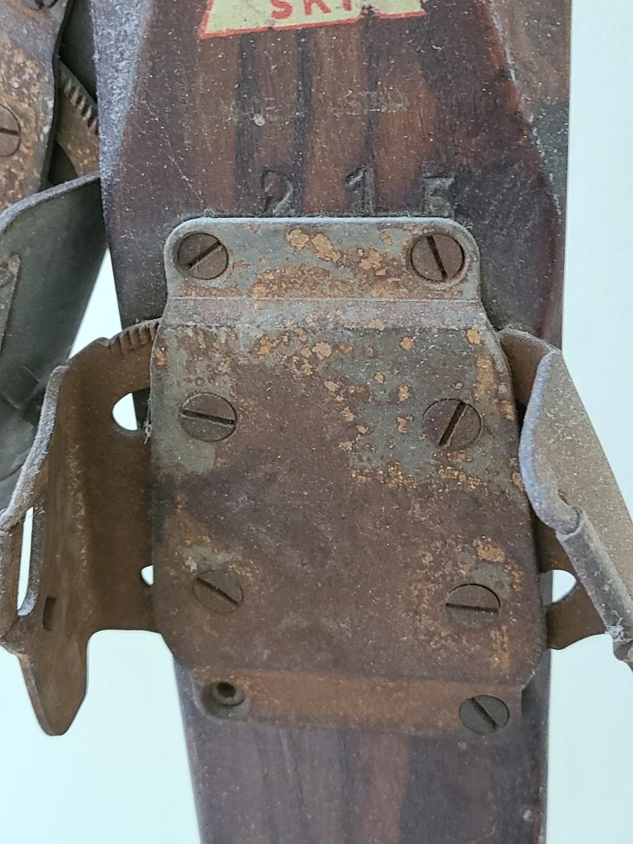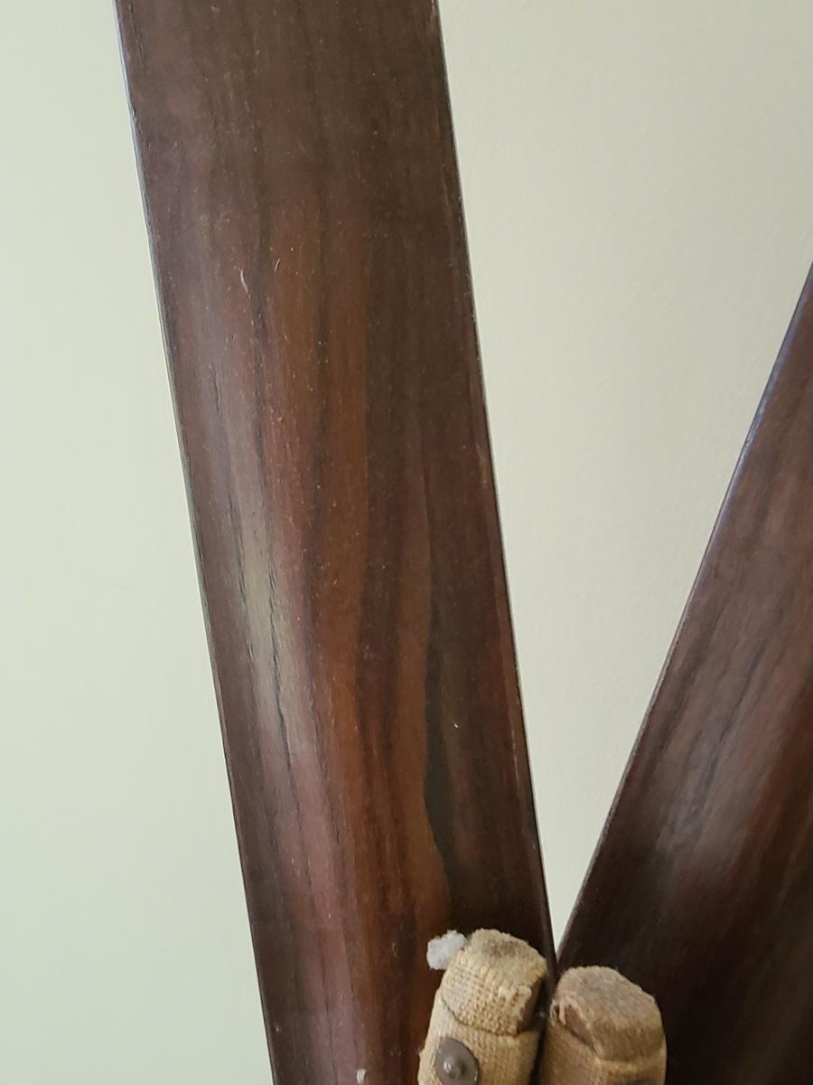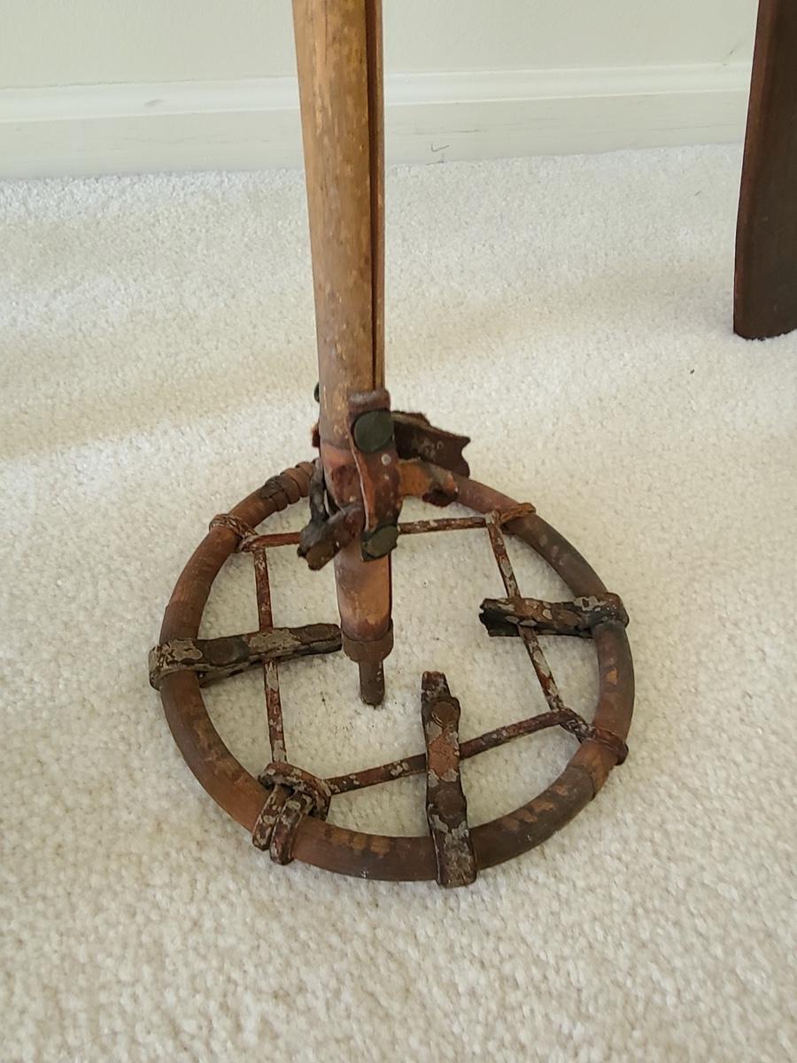 Antique wood skis with poles with leather webs (one is disconnected). These were used as home decor! Please see all pictures for the condition and sizes of the lot.