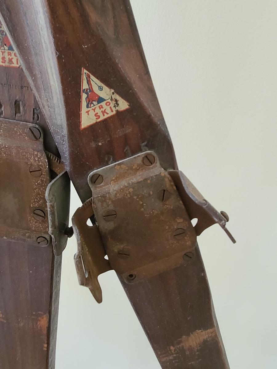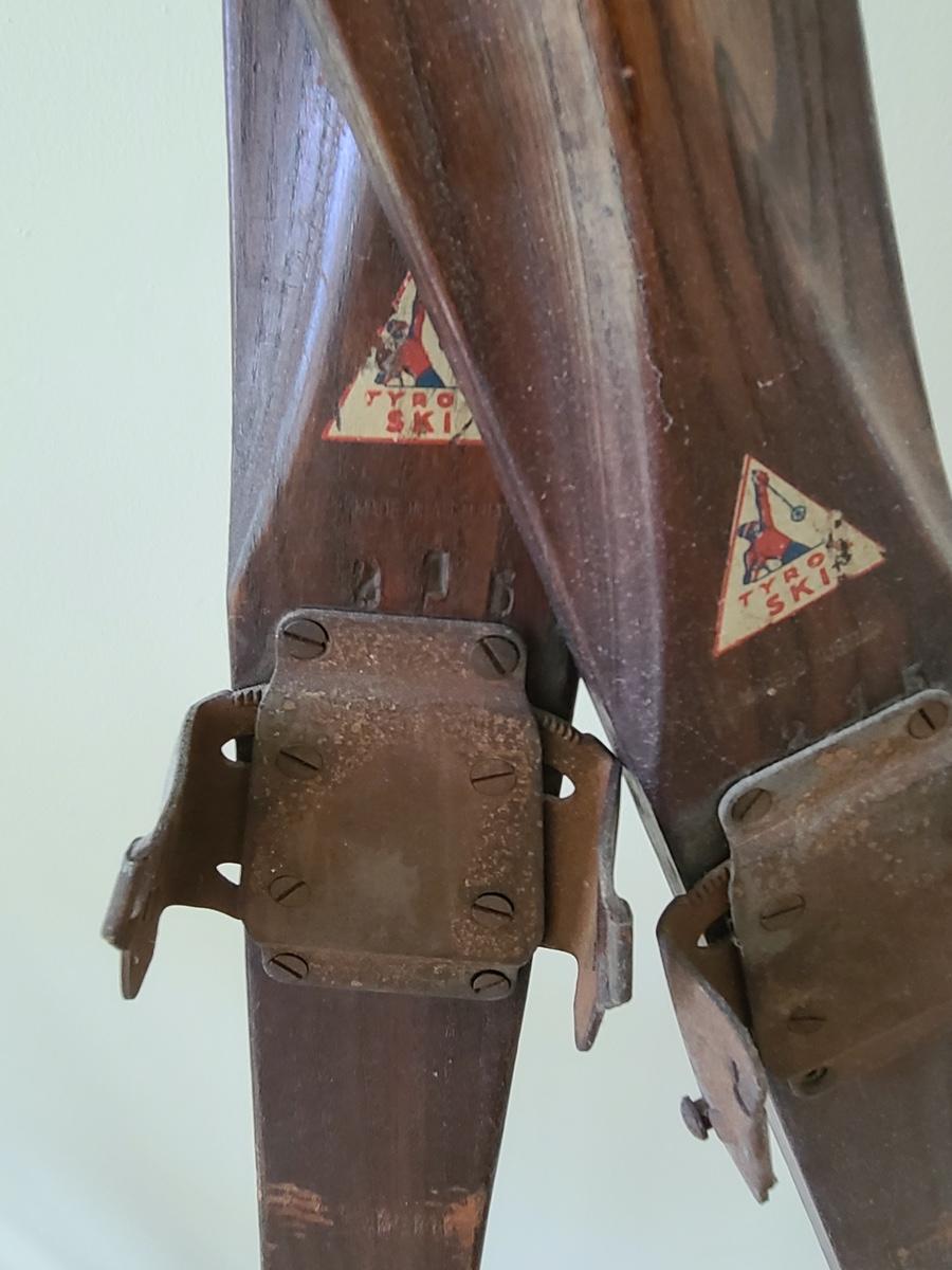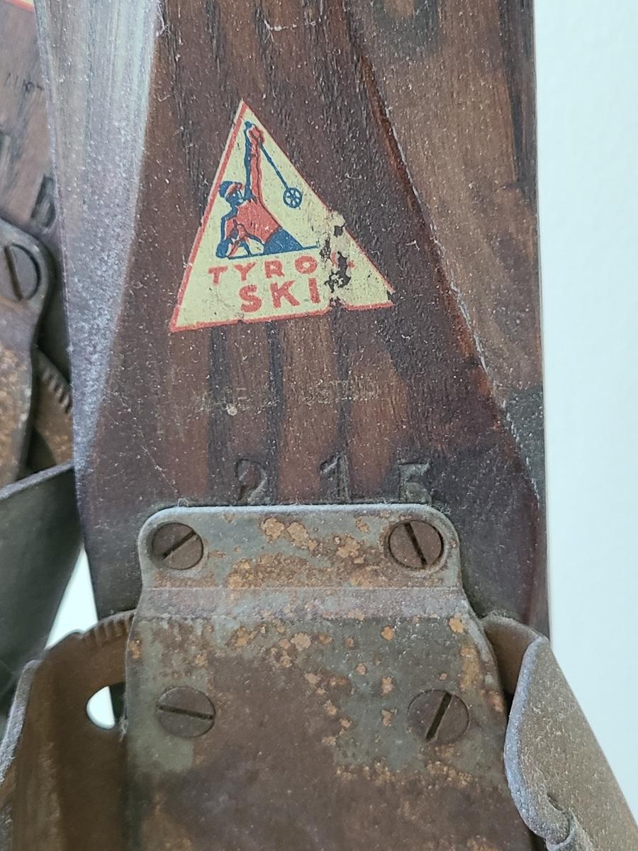 Lot 133: Antique/Vintage Tyro Wooden Downhill Skis with poles