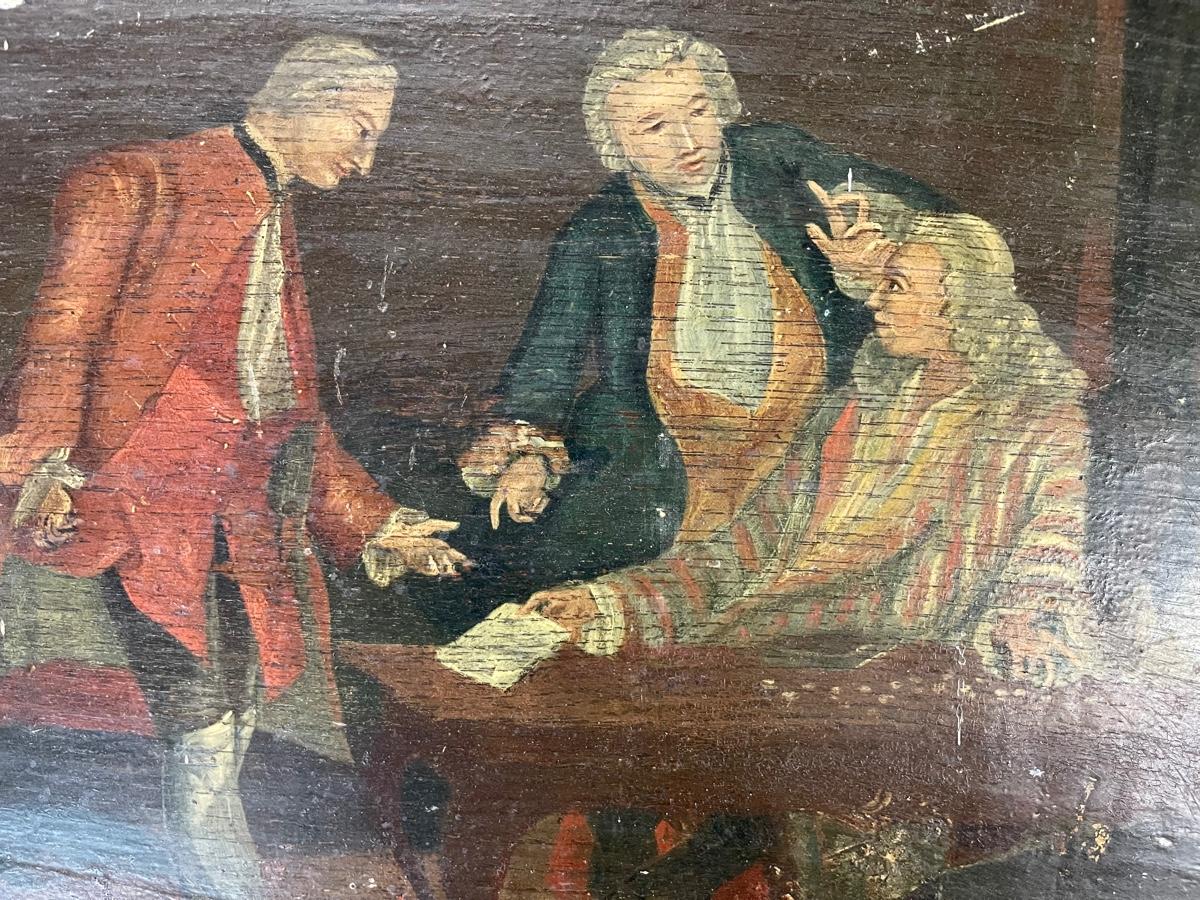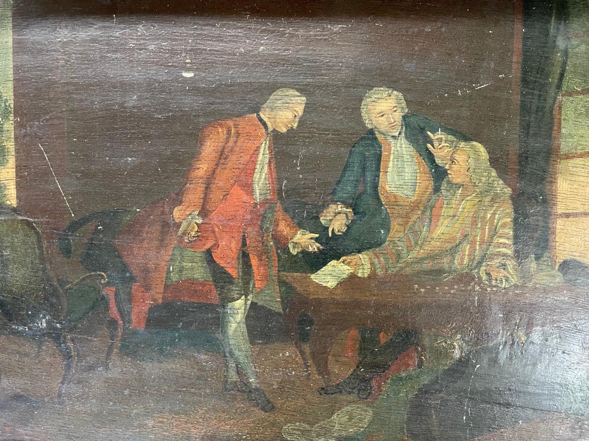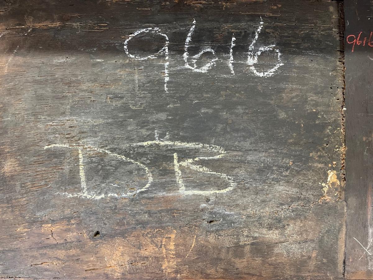 LOT 133 Antique Painting on Wooden Hand Hewn Board. This item is part of the David-Pleydell-Bouverie Estate at Bouverie Ranch in Glen Ellen. This item can be viewed at our Green + Cate Showroom in Sebastopol from July 15th - July 18th between the hours of 9am-5pm. For the benefit of the Bouverie Preserve of Audubon Canyon Ranch.