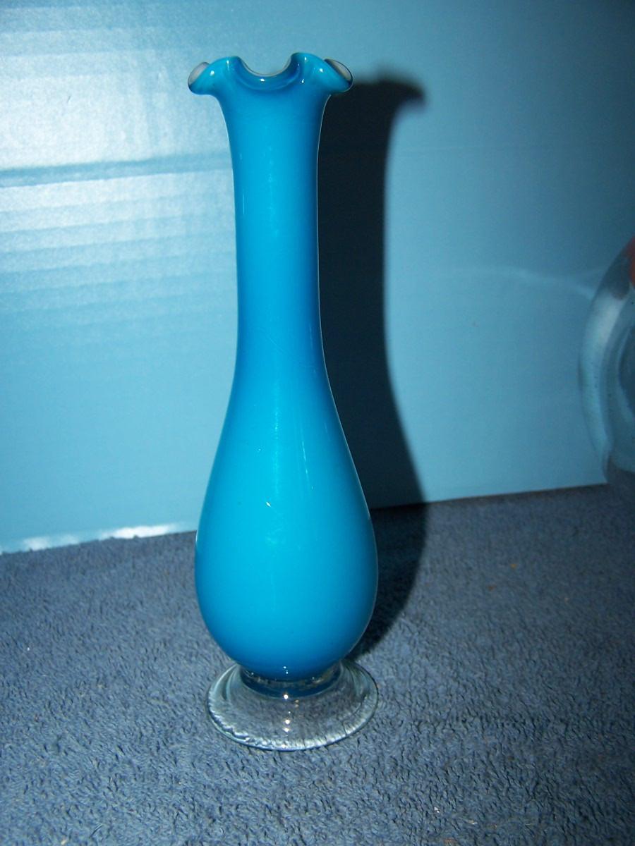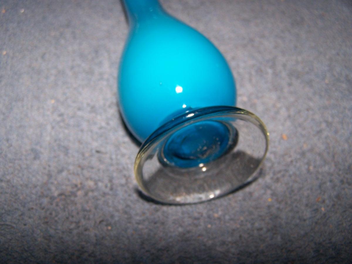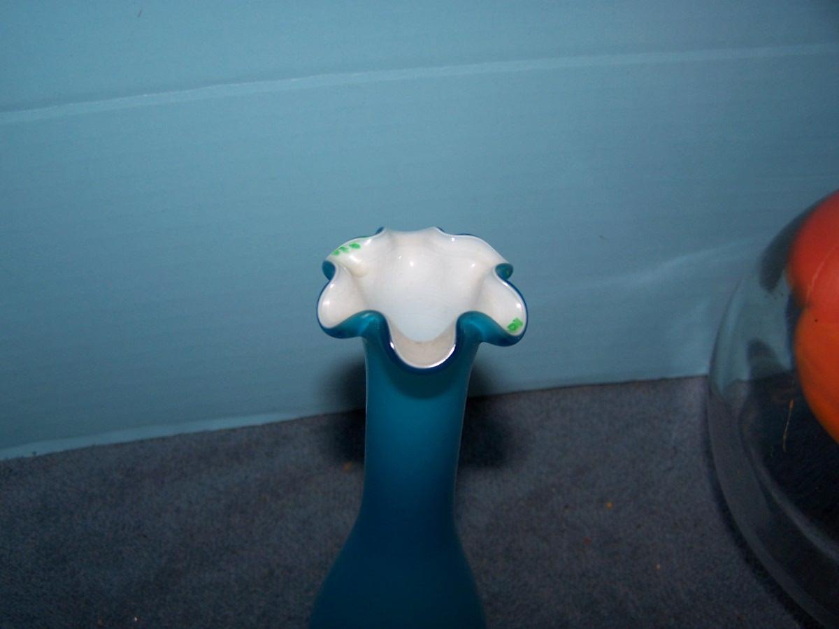 THESE ARE BEAUTIFUL ART GLASS VASES!!! UNMARKED.. TEAL/WHITE VASE IS 7 1/2'' TALL.. LIGHT WEAR