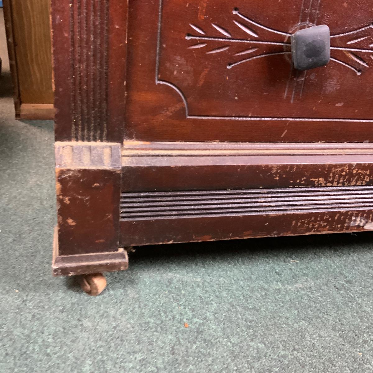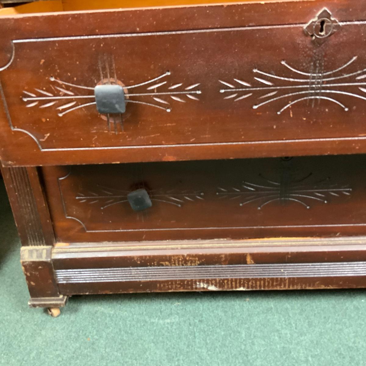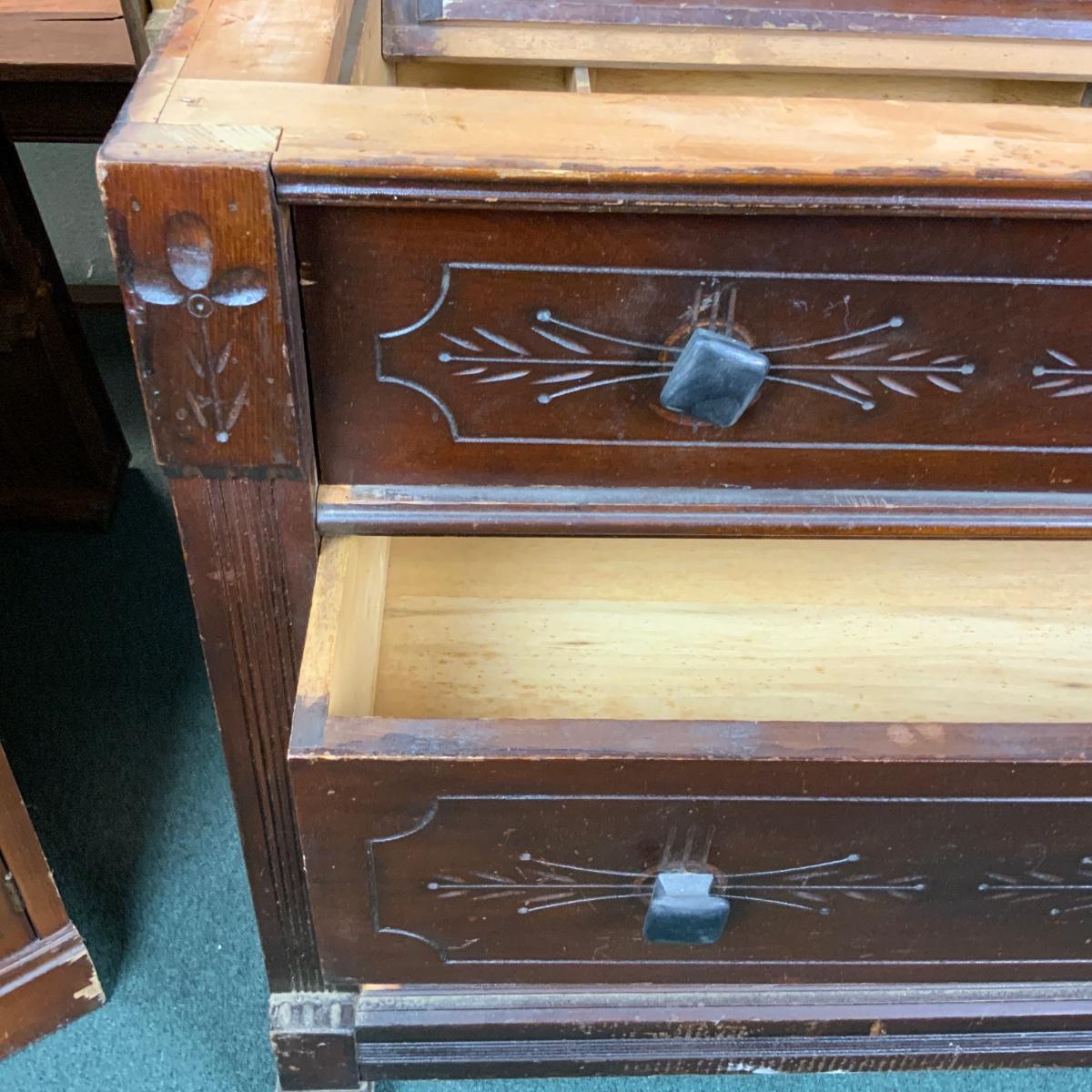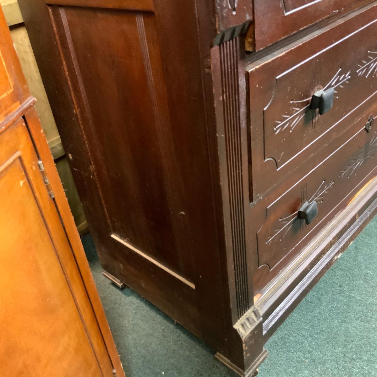 Eastlake Chest of Drawers. Great detailing on the front of the drawers. Please see photos for details and condition. //::\\ Please see photos for details and condition. No attempt has been made to hide any imperfections. All items listed in this auction are warehouse items, and need to be cleaned. A majority of the items need restoration as well. All items are sold AS IS and WITHOUT GUARANTEE. If you are uncertain about an item, DO NOT BID. Due to the nature of this online auction in-person inspection is HIGHLY recommended. All Sales are FINAL. Pick Up Times are FIRM. Please confirm with your own schedule that you can pick up in the scheduled times listed in the Terms and Conditions. Any questions please message the auctioneer. DO NOT Contact The Harp Gallery.