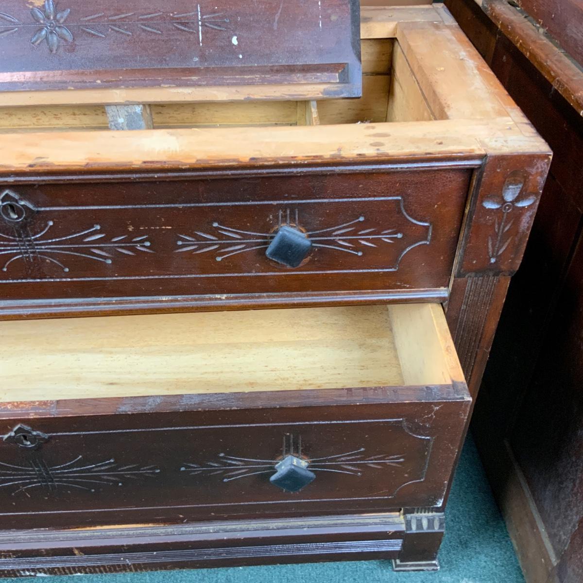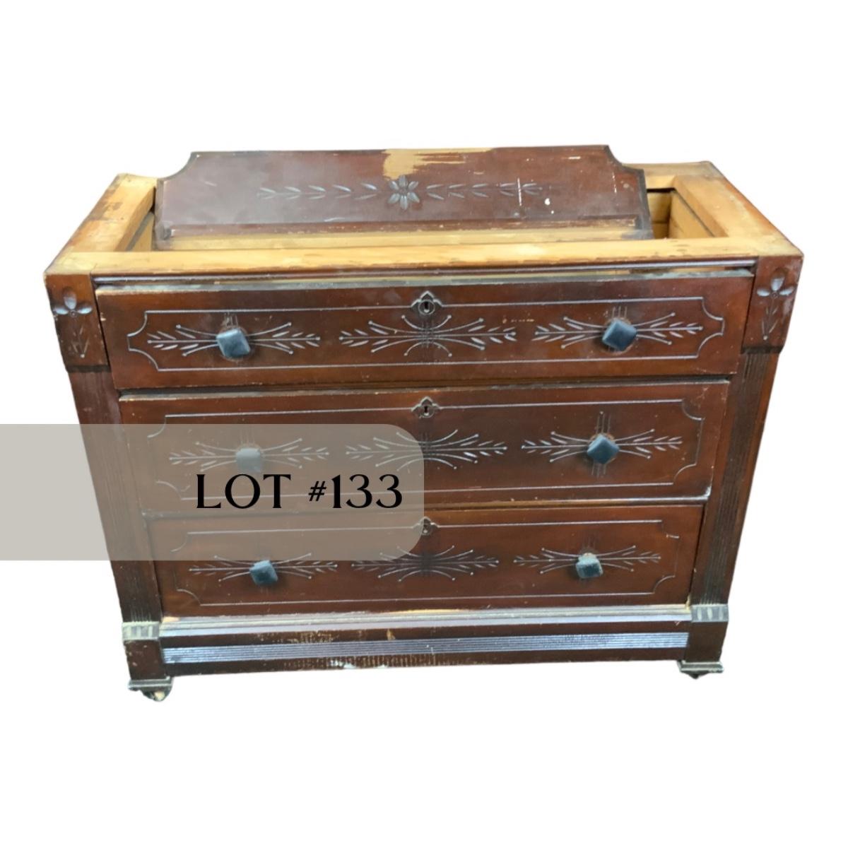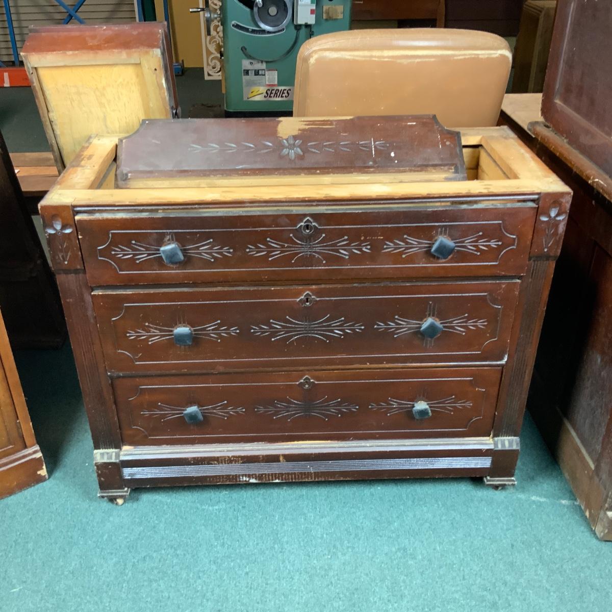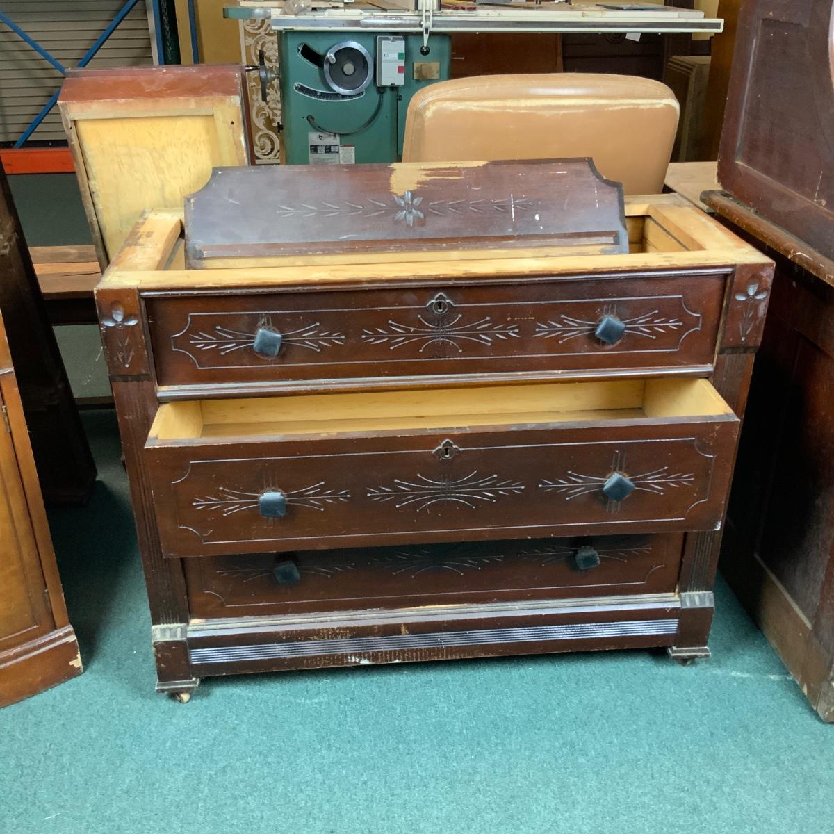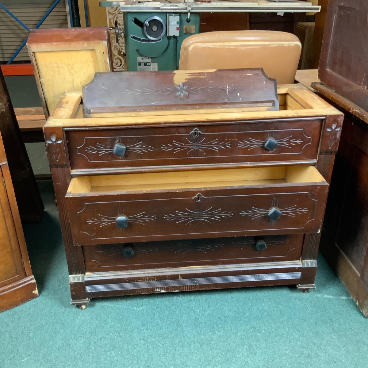 Eastlake Chest of Drawers. Great detailing on the front of the drawers. Please see photos for details and condition. //::\\ Please see photos for details and condition. No attempt has been made to hide any imperfections. All items listed in this auction are warehouse items, and need to be cleaned. A majority of the items need restoration as well. All items are sold AS IS and WITHOUT GUARANTEE. If you are uncertain about an item, DO NOT BID. Due to the nature of this online auction in-person inspection is HIGHLY recommended. All Sales are FINAL. Pick Up Times are FIRM. Please confirm with your own schedule that you can pick up in the scheduled times listed in the Terms and Conditions. Any questions please message the auctioneer. DO NOT Contact The Harp Gallery.