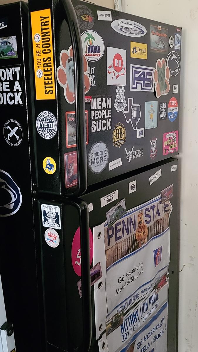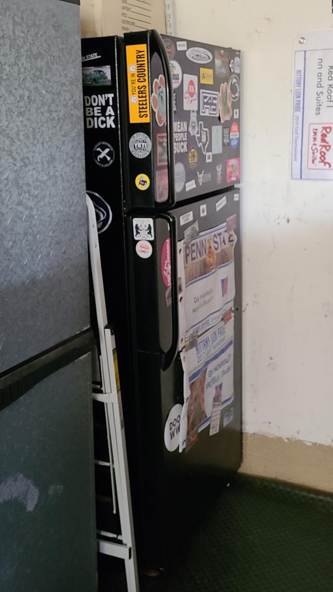 Black GE Refrigerator with free stickers! This is covered with stickers, but it is fully functional. Contents of fridge not included. Please see all pictures for content of the lot, condition of the lot, and measurements if taken. Pictures are the best representation of the items listed and items are untested unless indicated in description. Thank you for looking and have fun bidding!