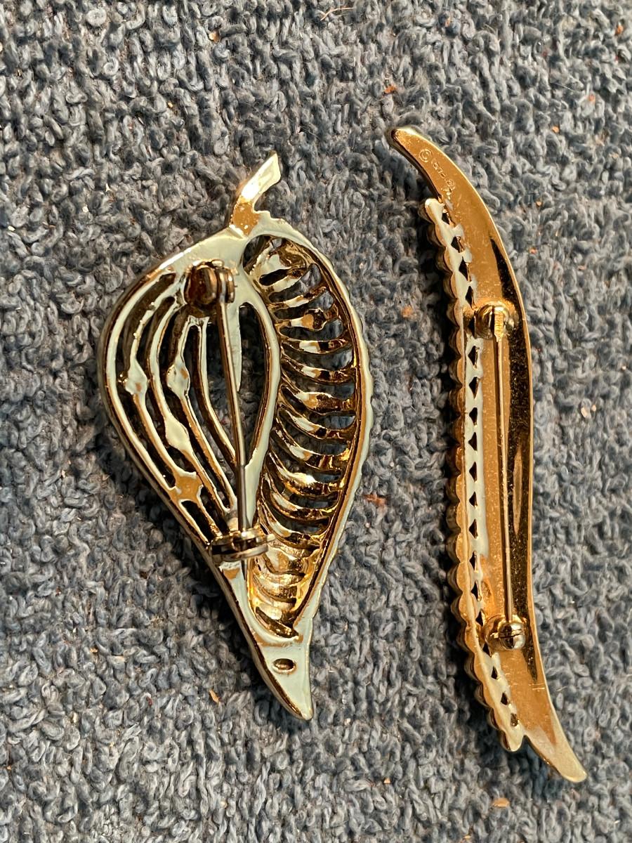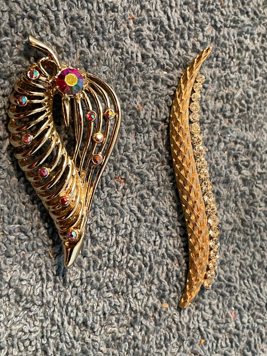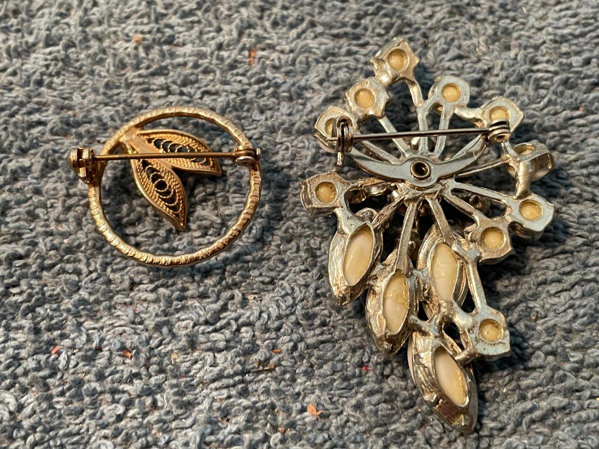 THESE ARE GREAT VINTAGE PINS!!! 1 IS MISSING A RHINESTONE, OTHERWISE, LIGHT WEAR..