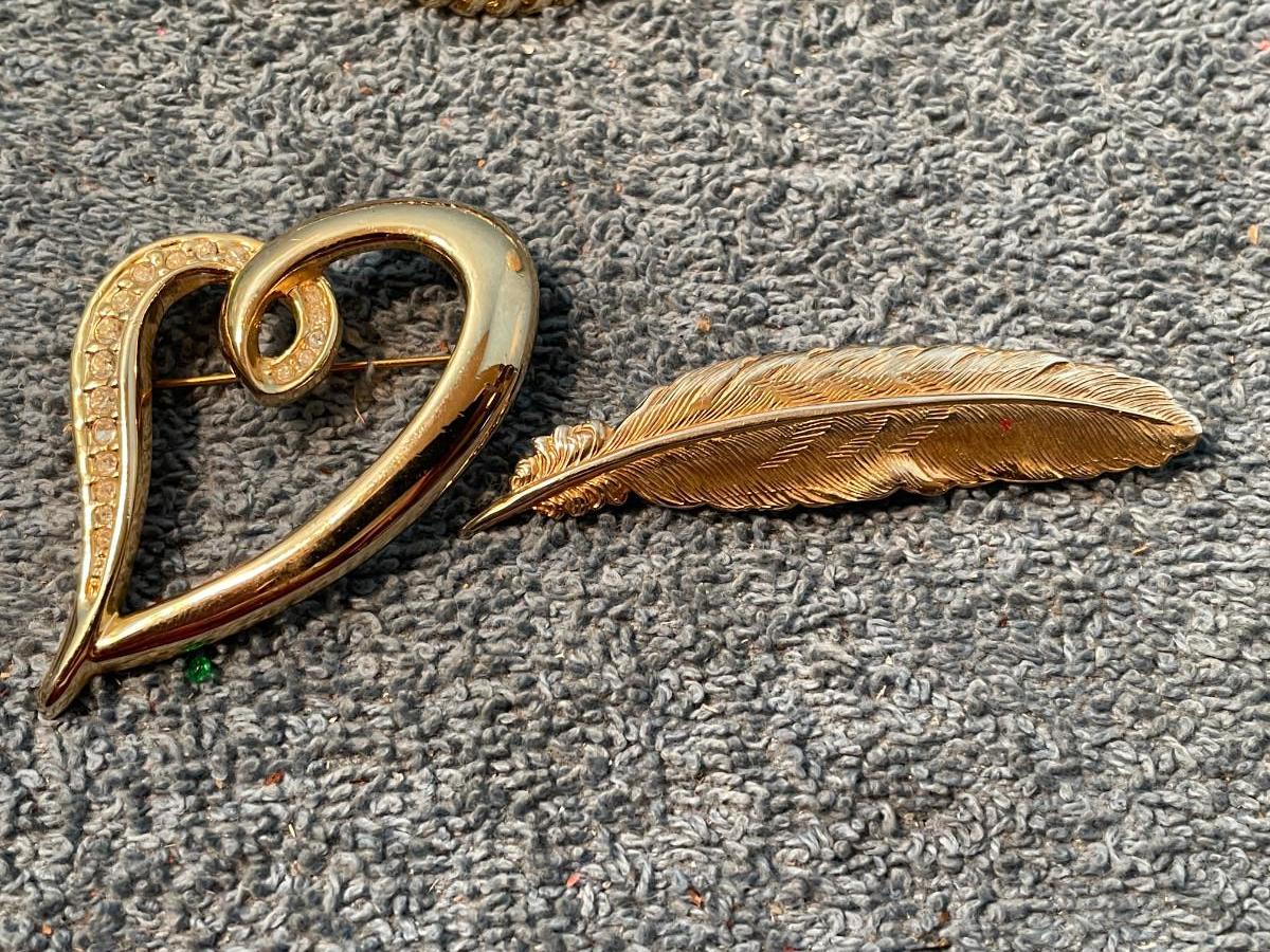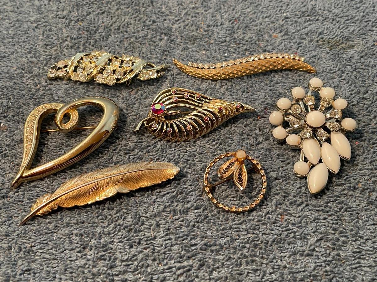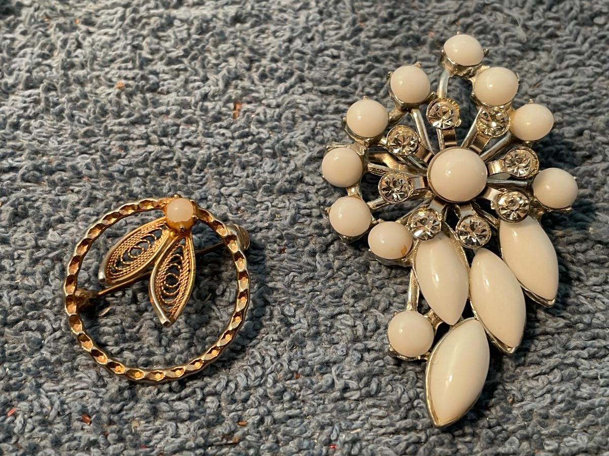 THESE ARE GREAT VINTAGE PINS!!! 1 IS MISSING A RHINESTONE, OTHERWISE, LIGHT WEAR..