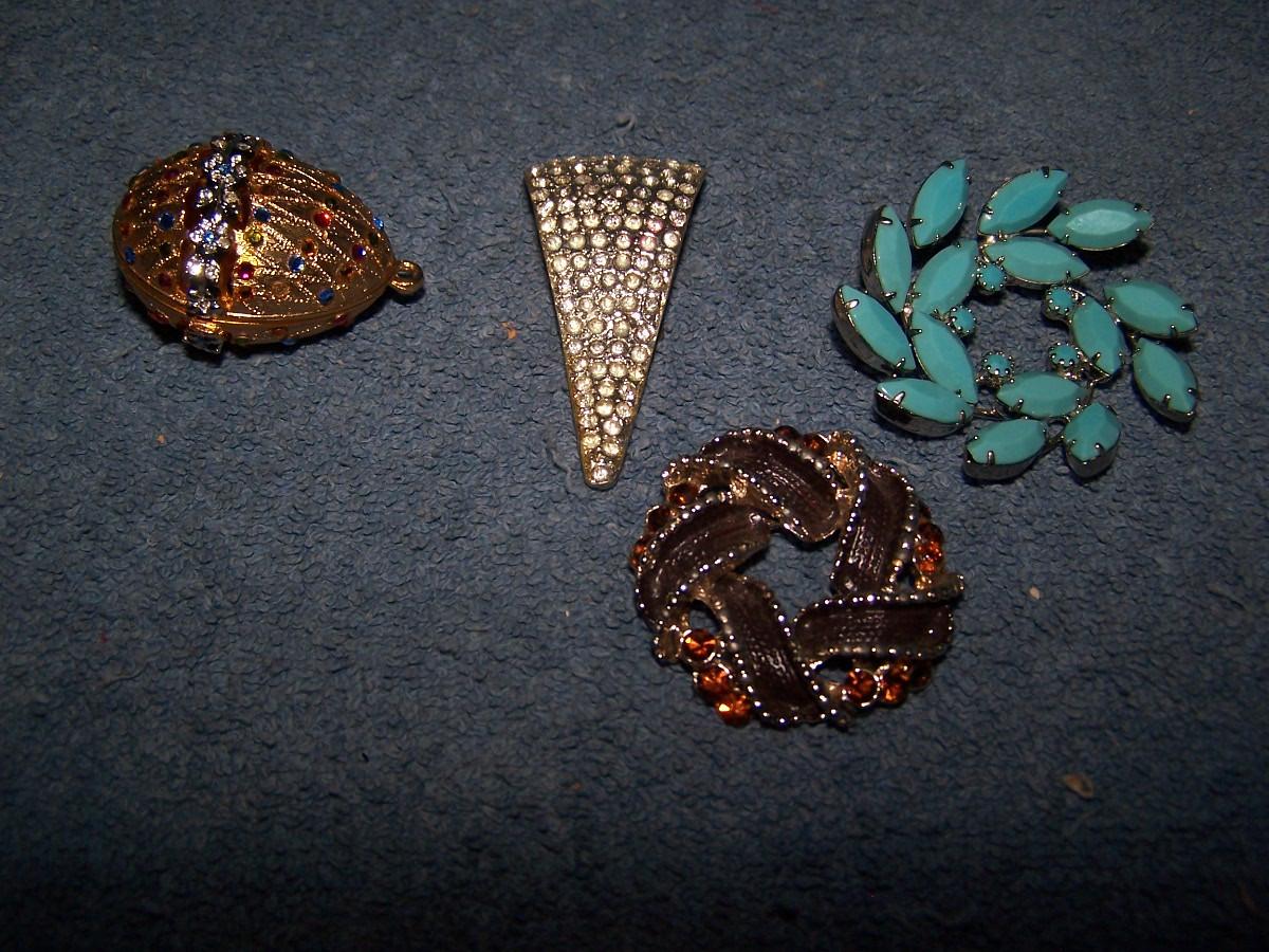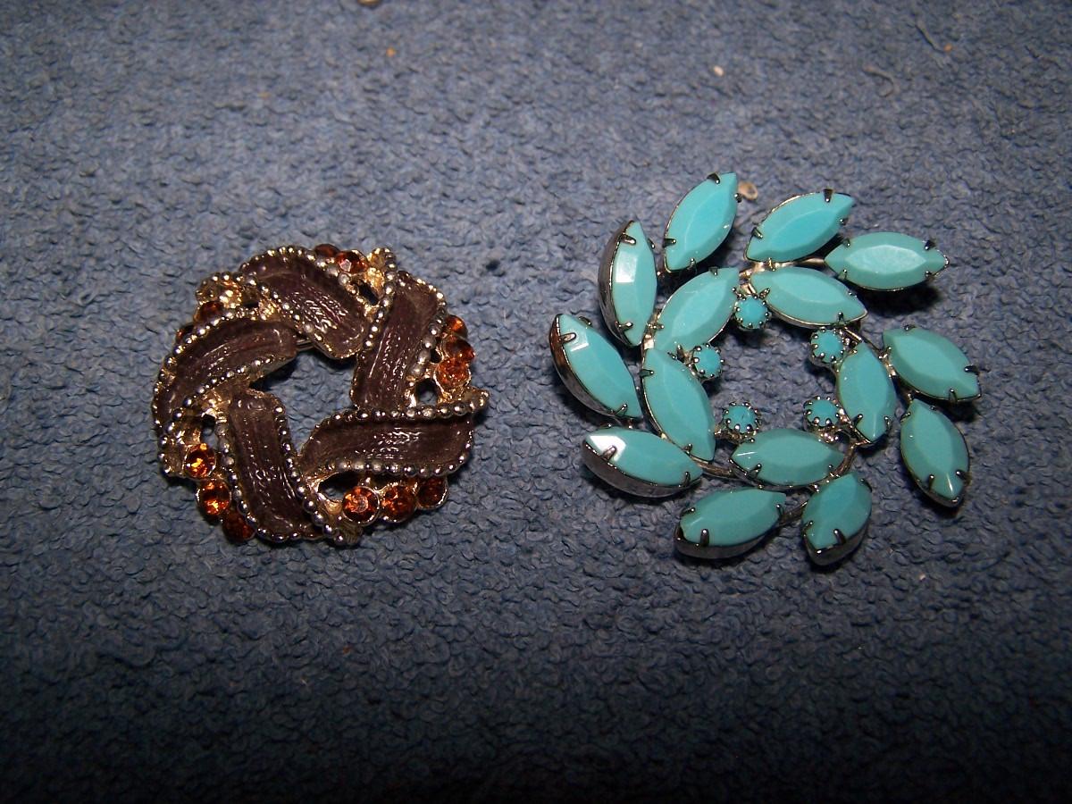 THIS IS SOME GREAT VINTAGE RHINESTONE JEWELRY! UNMARKED.. CLIP-2 1/8''.. TURQUOISE PIN HAS A TINY FLAKE ON 1 RHINESTONE, OTHERWISE, LIGHT WEAR..