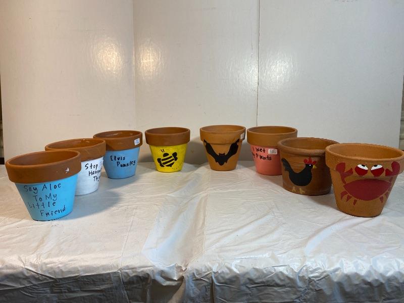 Lot 133 8 Hand painted Flower Pots