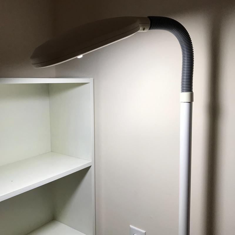This beautiful lace-knit alpaca throw blanket is almost too hard and in need of a skilled knitter to finish and block it (no pattern included). Knit from Berroco Ultra Alpaca. Includes needles and 5 whole skeins. Lot also includes knitting/sewing lamp, perfect to set next to your favorite knitting chair.