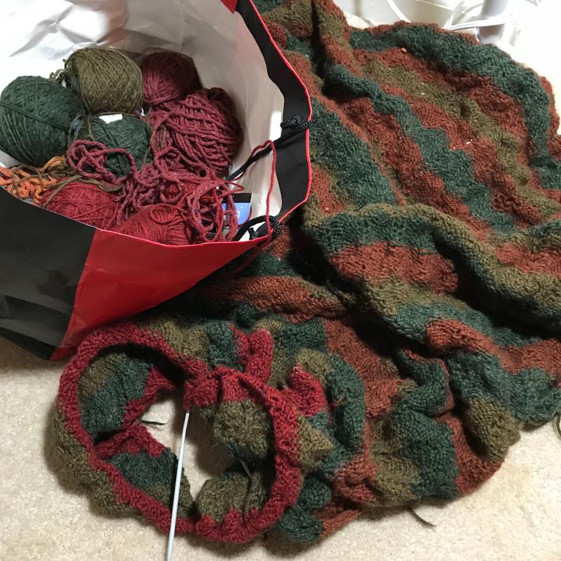 Lot 133 - Knitting Lamp and Almost-Finished Alpaca Throw