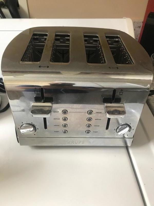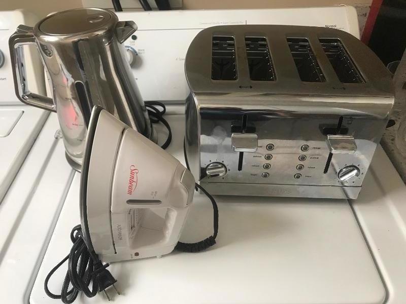 Krups 4 slice toaster, Krups Silver Art Collection 2 quart electric kettle model BW600, Sunbeam electric iron