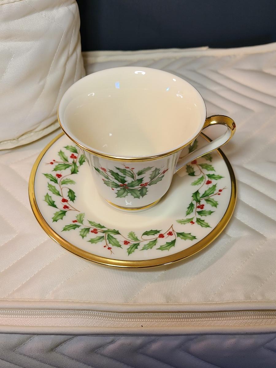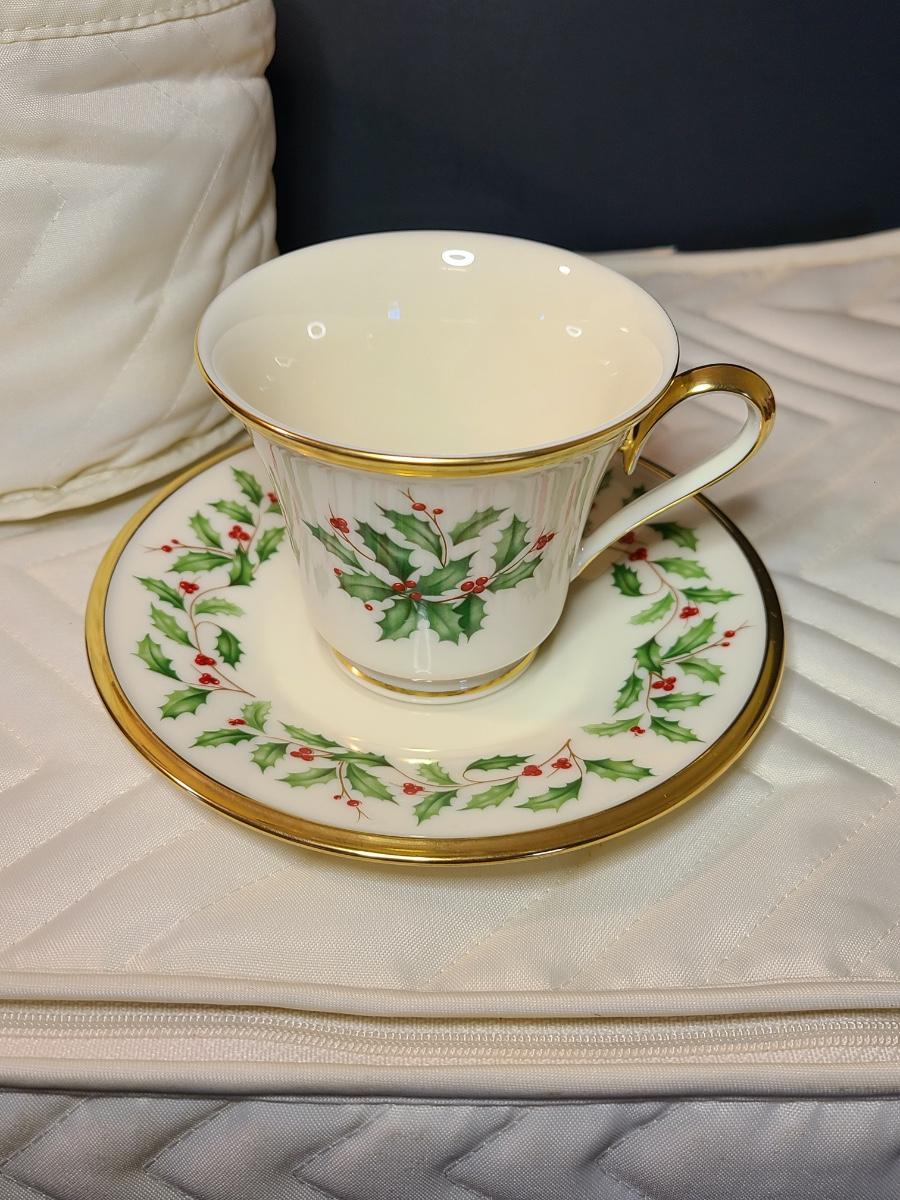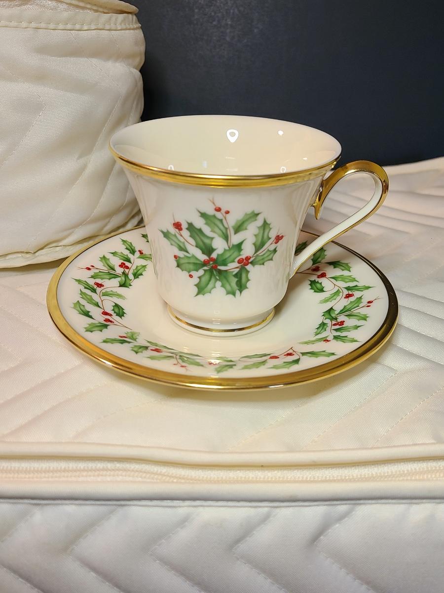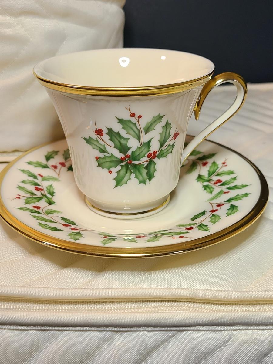 Lot 133: Lenox Dimension Collection "Holiday" Holly Pattern Teacups/Plates for 12