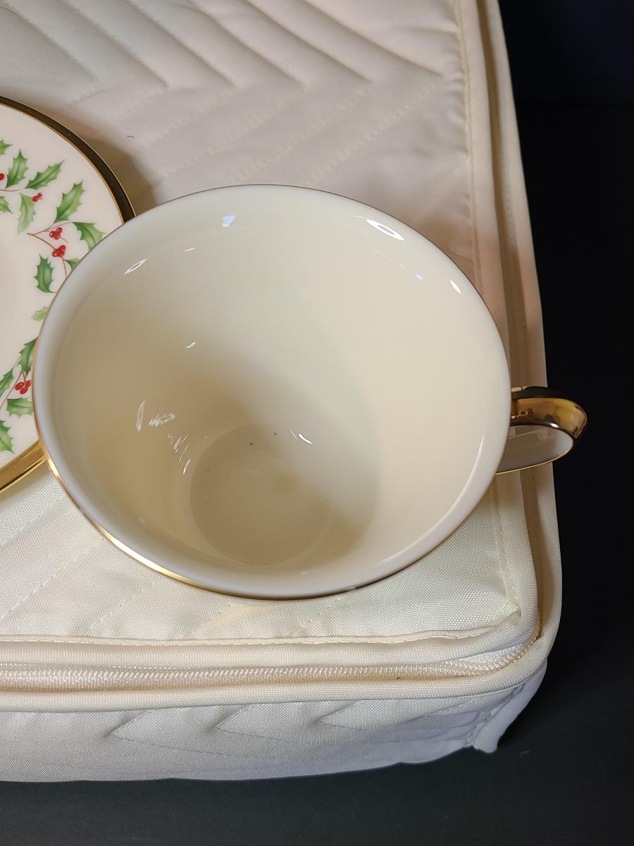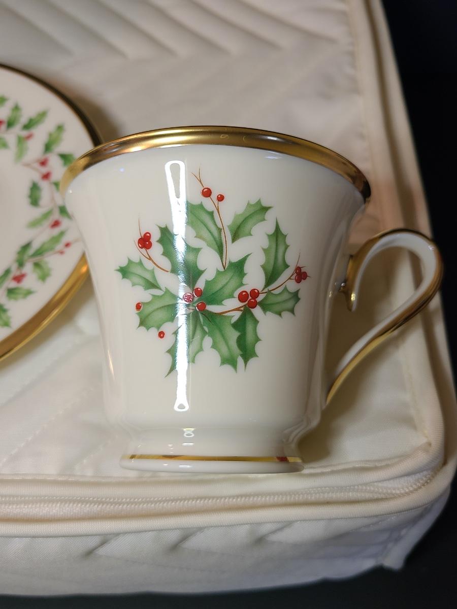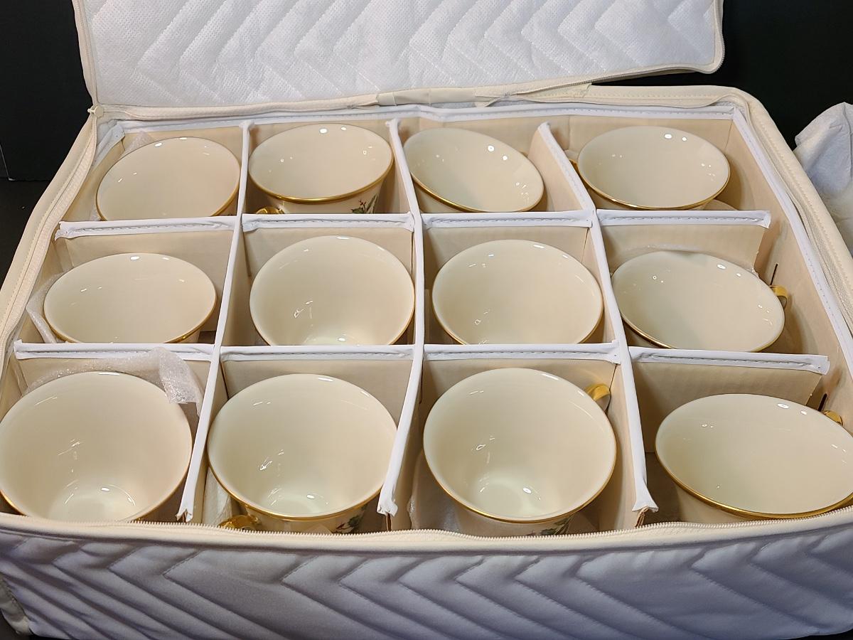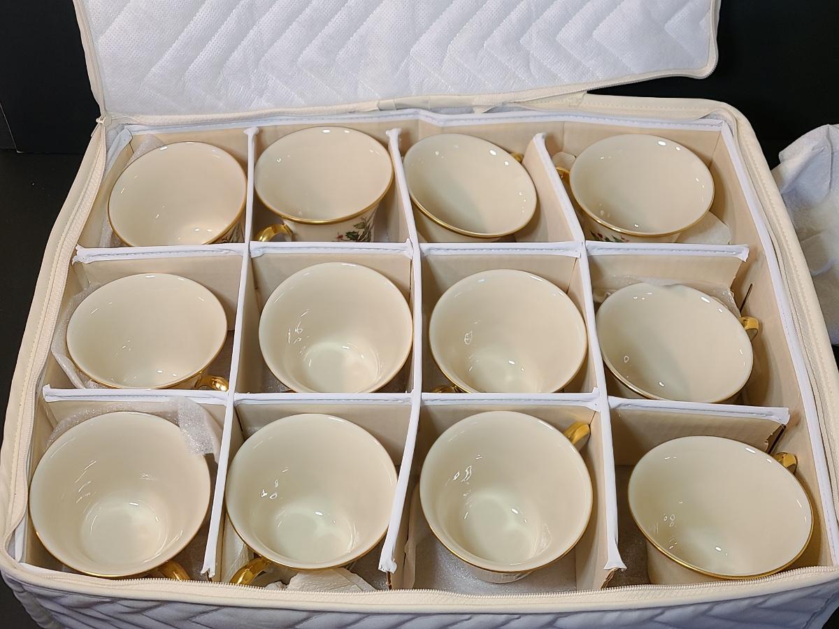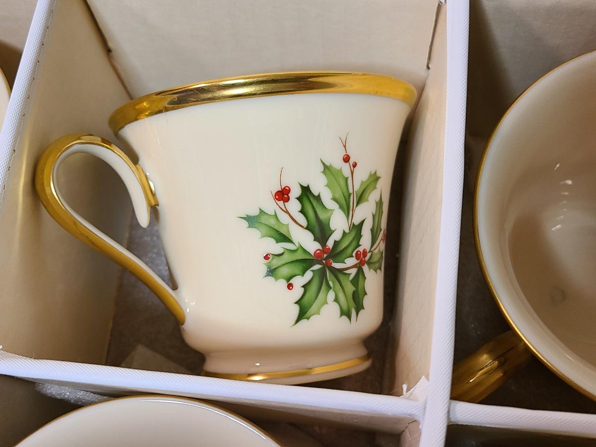 Lot 133: Lenox Dimension Collection "Holiday" Holly Pattern Teacups/Plates for 12