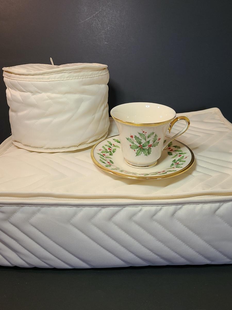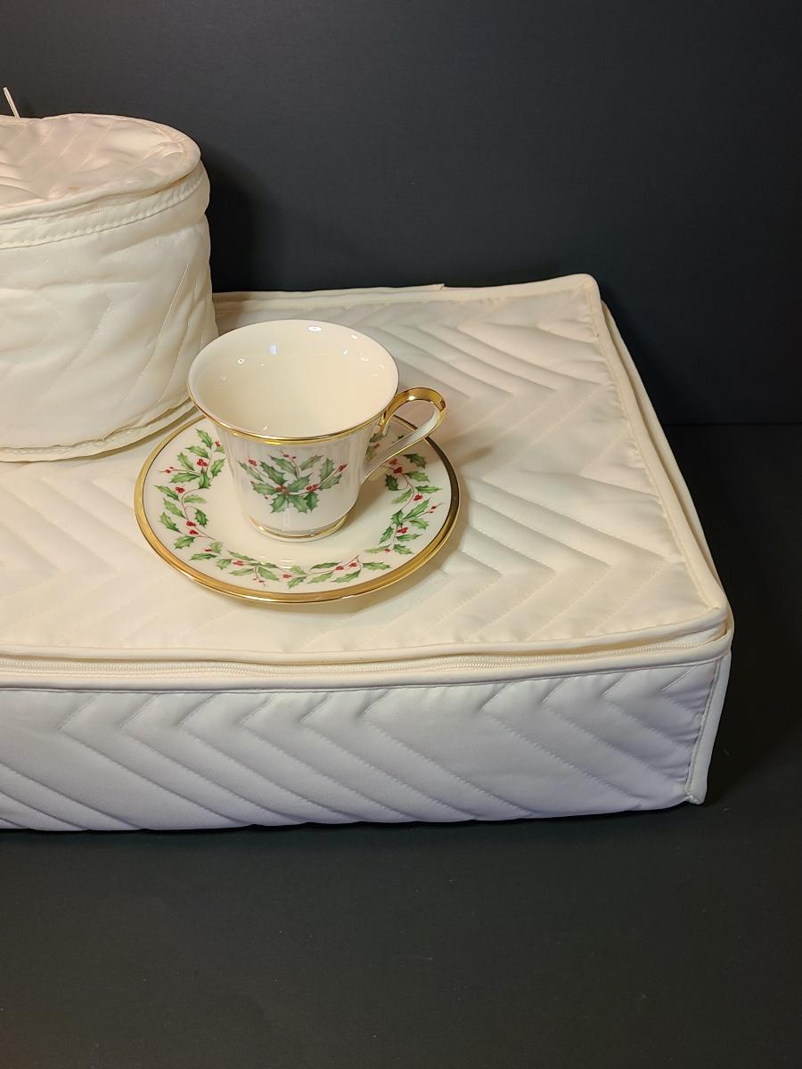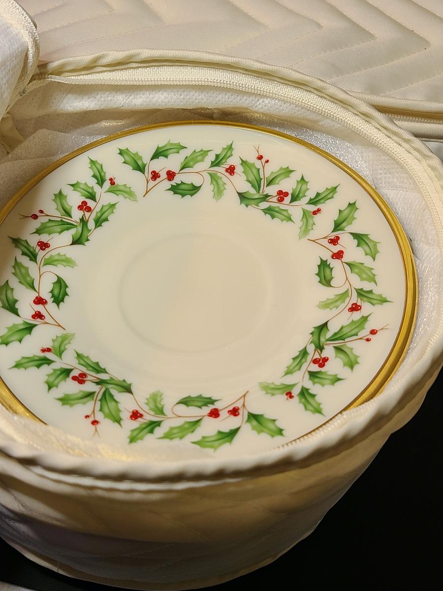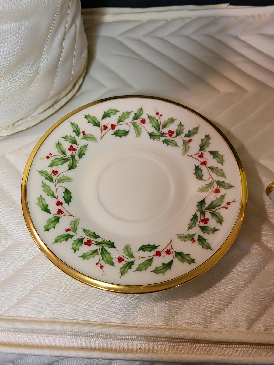 Lot 133: Lenox Dimension Collection "Holiday" Holly Pattern Teacups/Plates for 12