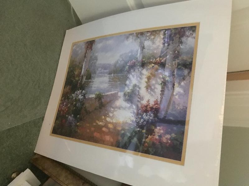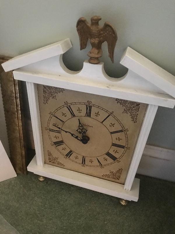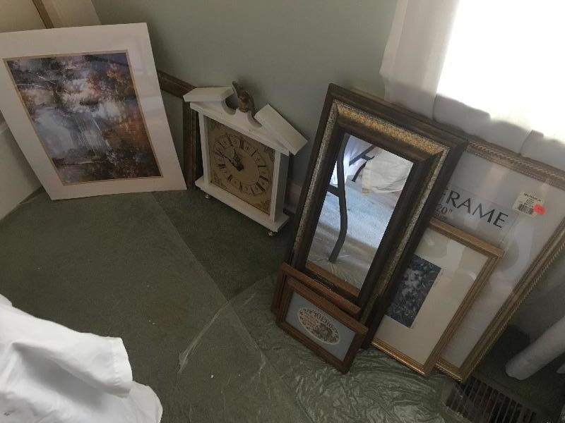 one piece is a signed Sarah kagan print, frames , colonial wall clock