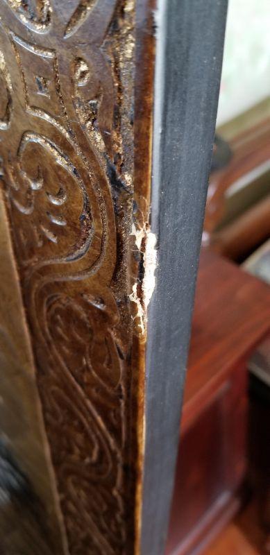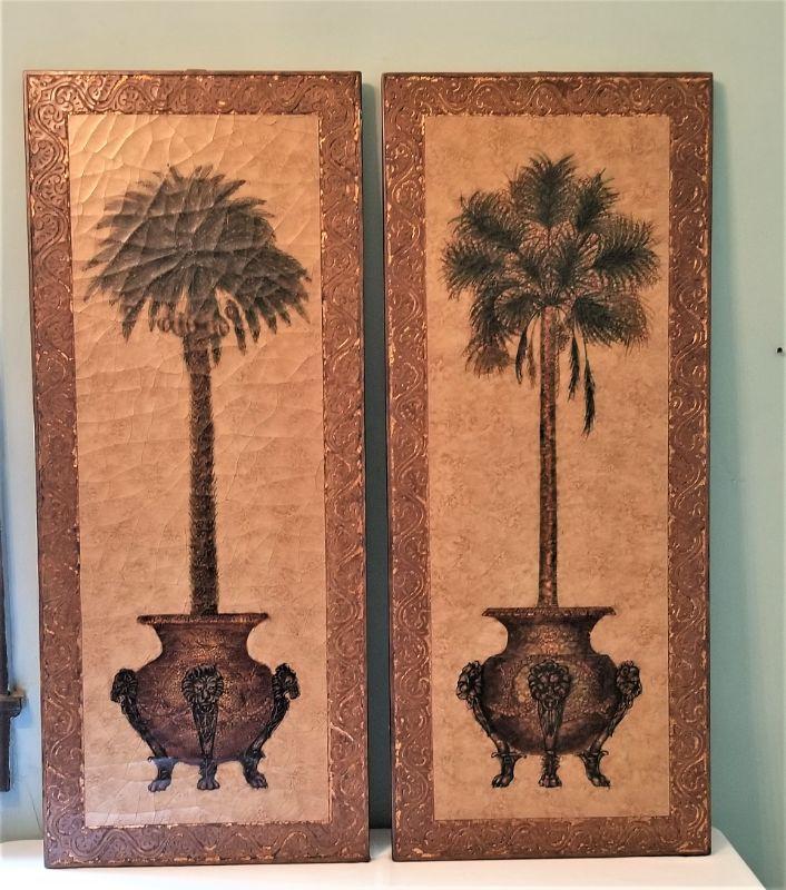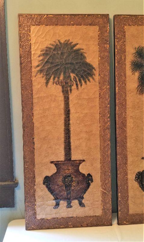 These Florentine Style decorative pictures depict two slightly different potted plants. One has a bit of damage on the side - see photo. 20" x 48".