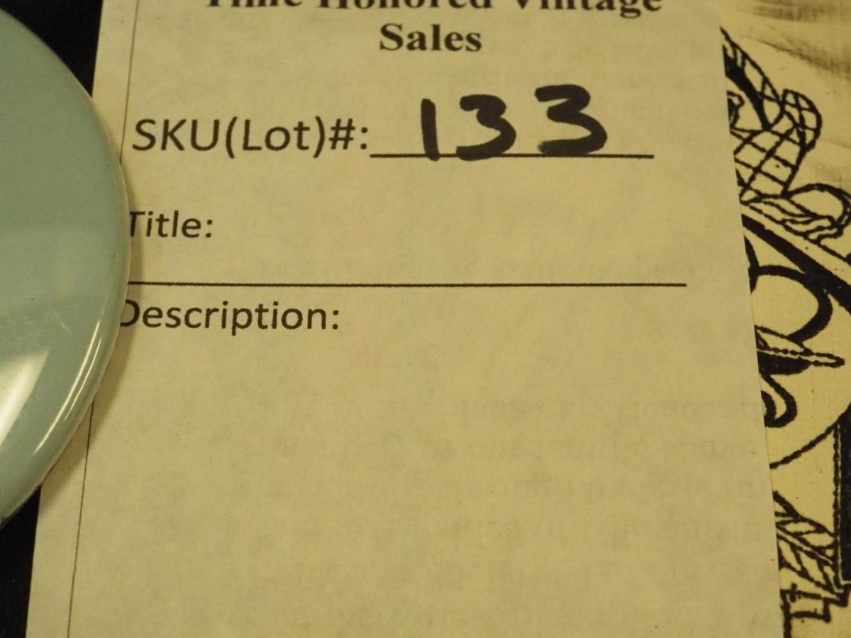 Lot 133  Picnic stack blue and white polka dot. Pansy card box, Cat pictures