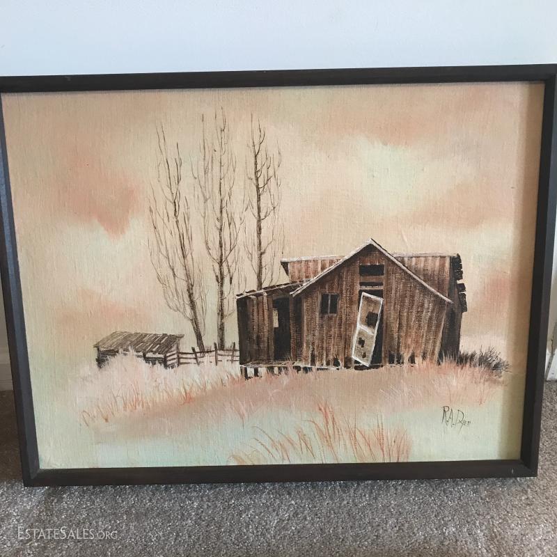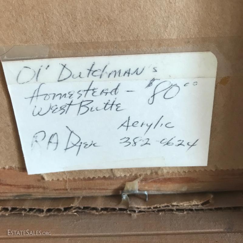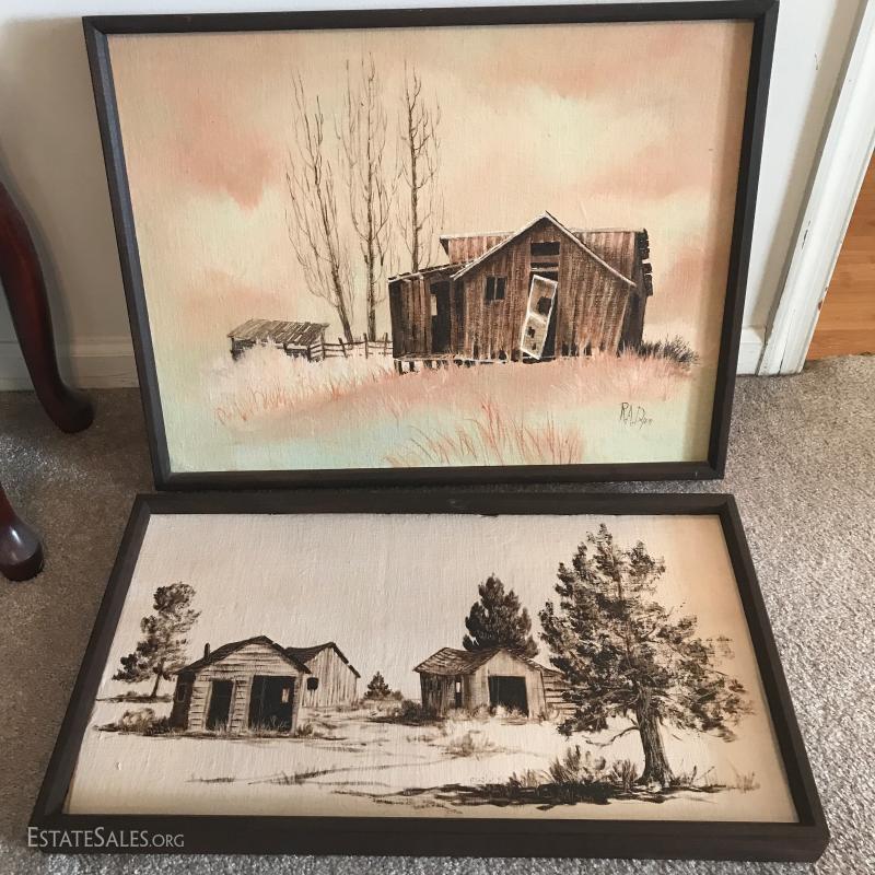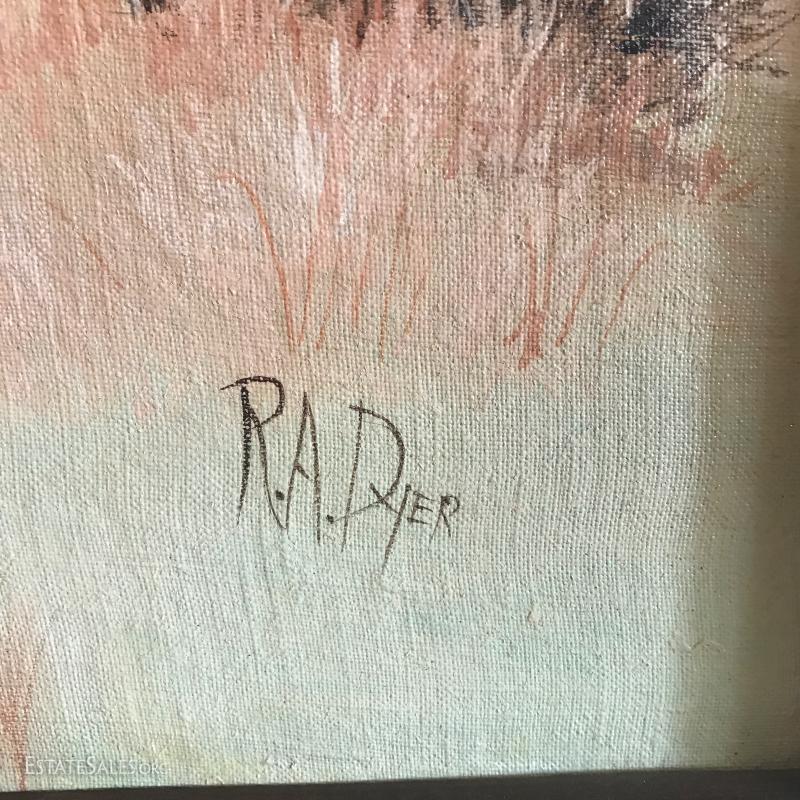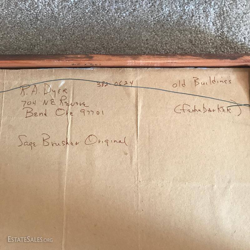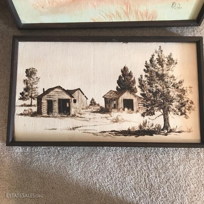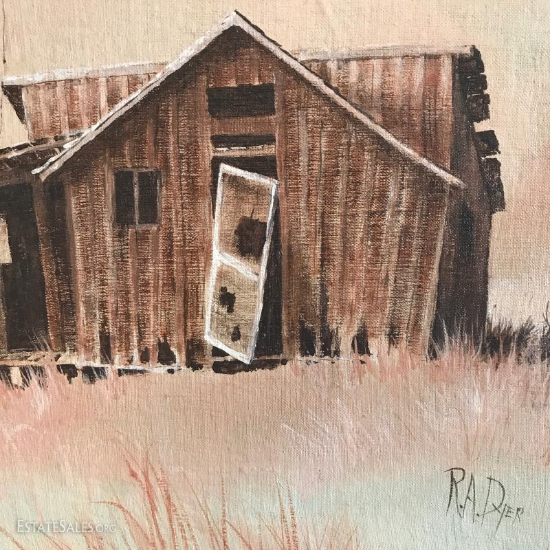 Two paintings by Bend, OR artist, RA Dyer, both on canvas, one oil and the other acrylic. Oil piece measures 24.5" x 14.5" and acrylic measures 25" x 19". This lot is available for shipping or local pick up in Mills River, NC.