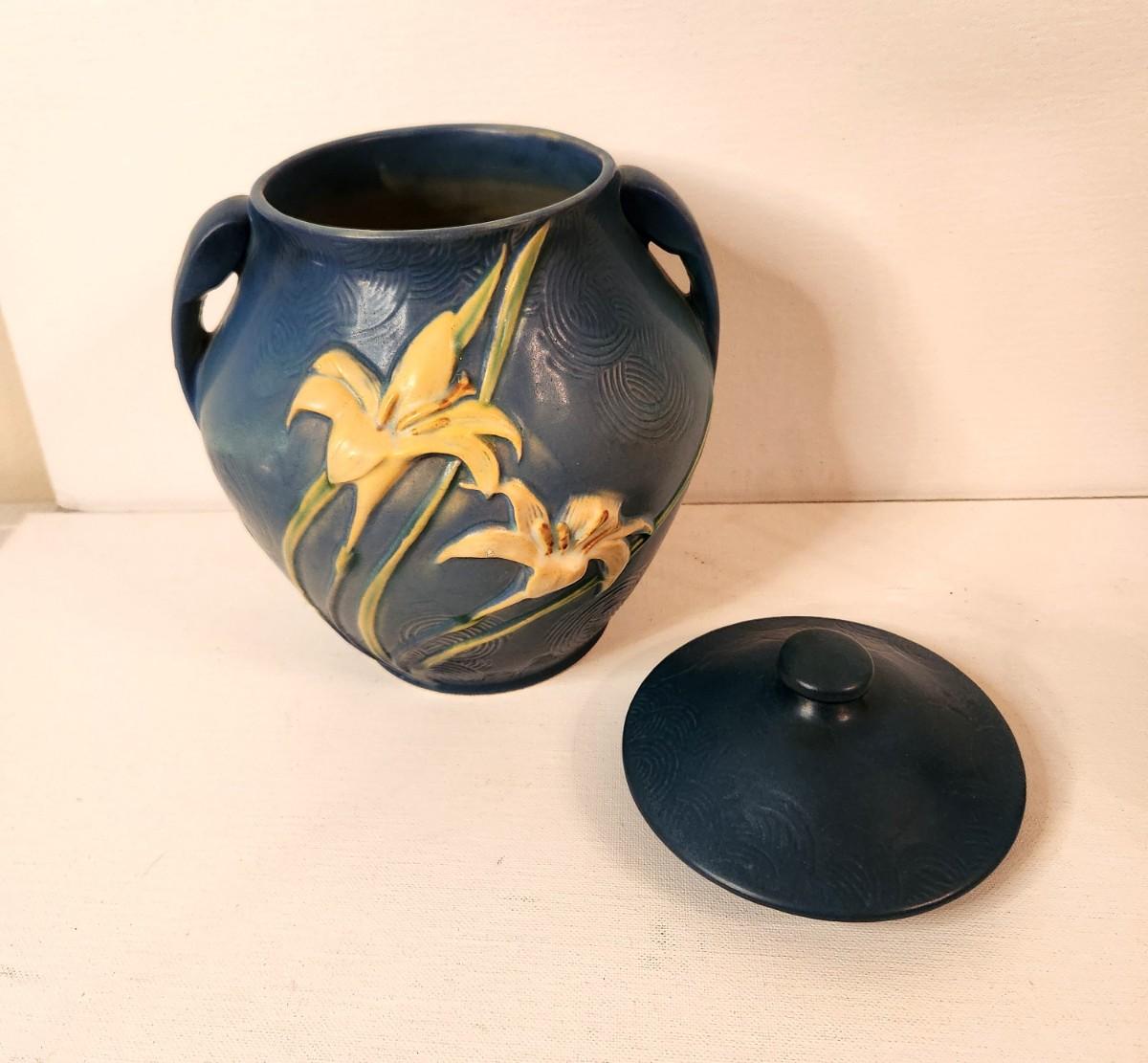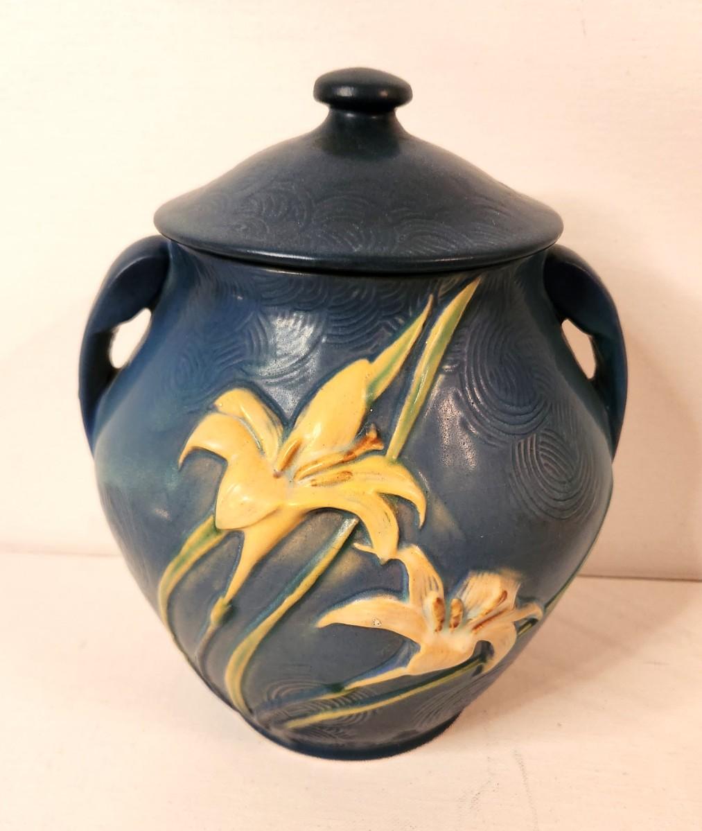 Lot #133 Roseville Pottery - Cookie Jar in the Zephyr Lily Pattern - great condition