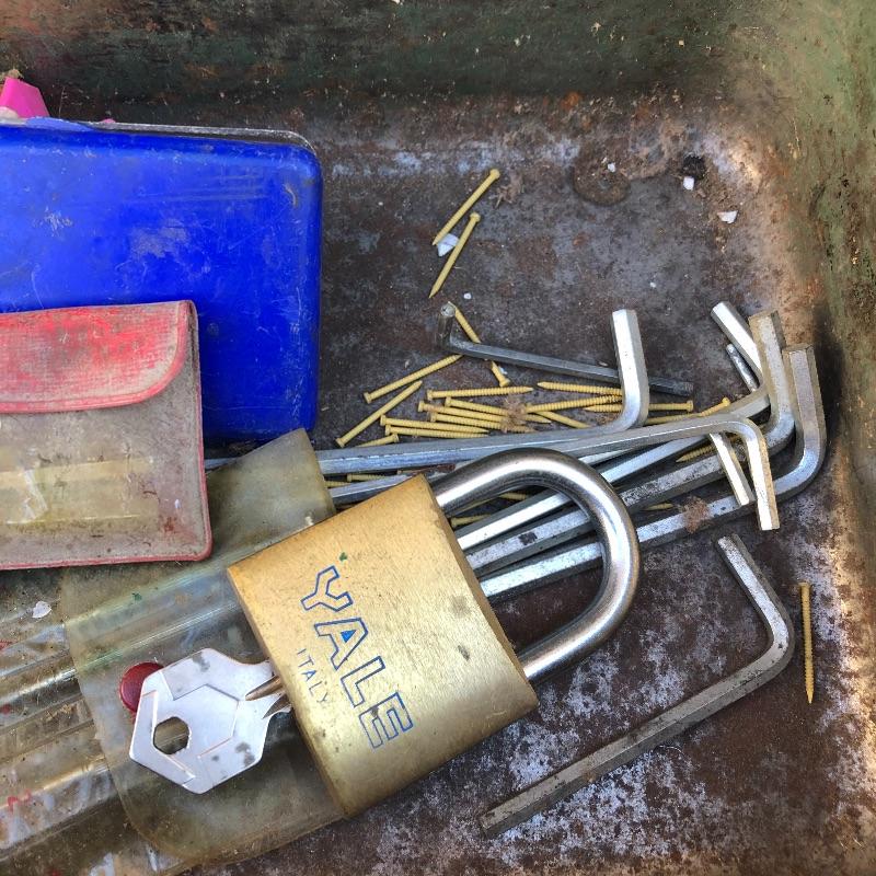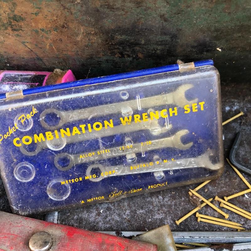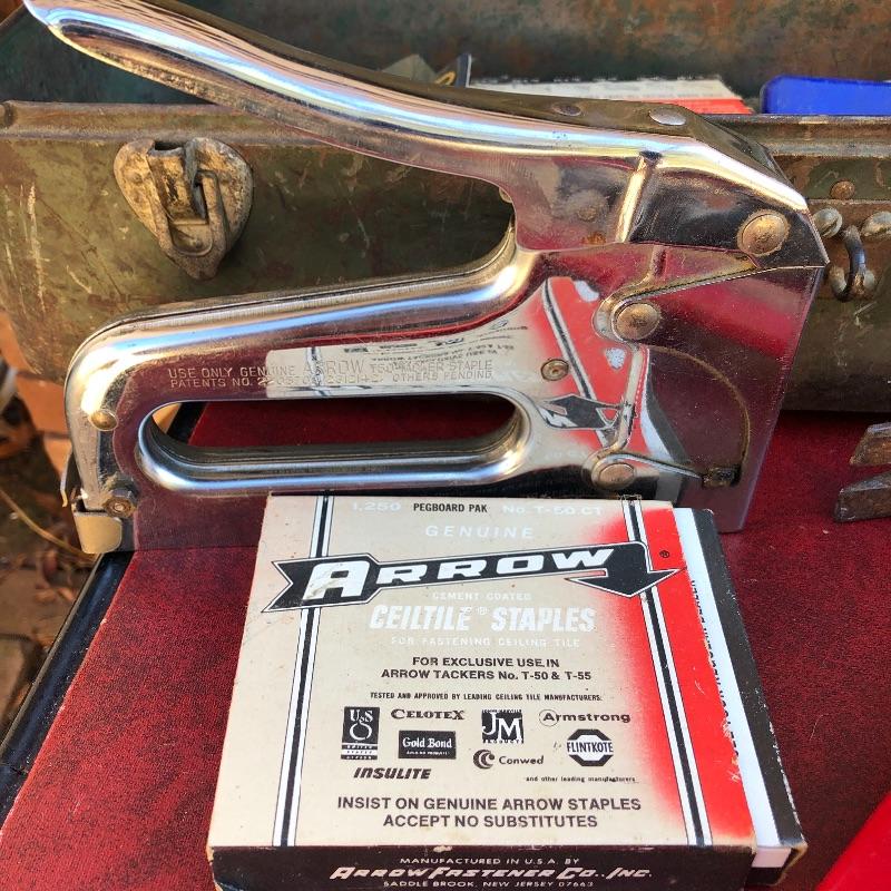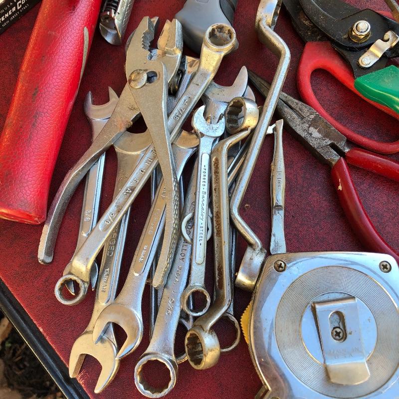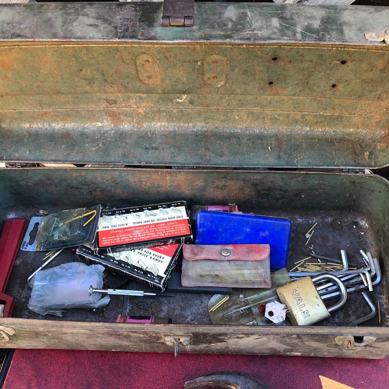 This lot has so much to offer! The staple items are an Archer Vibro-Tool (plugged in and tested), which can be used for many purposes such as etching into leather and glass, as well as a Mini Laser Level. It also comes with a large metal toolbox (19” x 7.5” x 6”) that contains nearly every tool under the sun, from wrenches to screwdrivers to a staple gun. Along with the toolbox, this lot contains three small pocket knives, as well as a larger curved knife that comes with a sheath. Local pickup only.