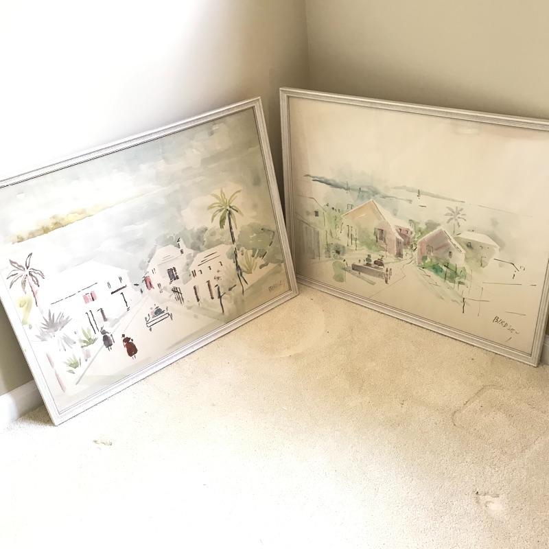 Two stunning scenes that appear to be Alfred Birdsey water color in matching frames. The frames measure 27” x 21” and the Art is behind glass. The art appears to be original, but we cannot verify it. Come to the preview and see for yourself! More Birdsey art can be found in lot 135. Shipping available. Please call UPS with dimensions at 828-252-6930 for a shipping quote prior to bidding.