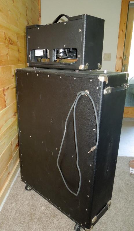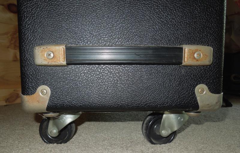 Fender Amp 40" x 29" x 12" on wheels. Winfield Thomas Elizabeth Amp. 20" x 10" x 7". Don't have specs on either amp. Both work and are in excellent condition. some rust on metal hardware on Fender amp. Fender is on rolling wheels. No tears or gouges.