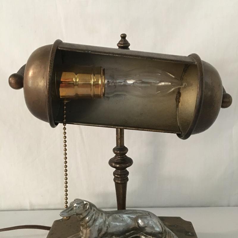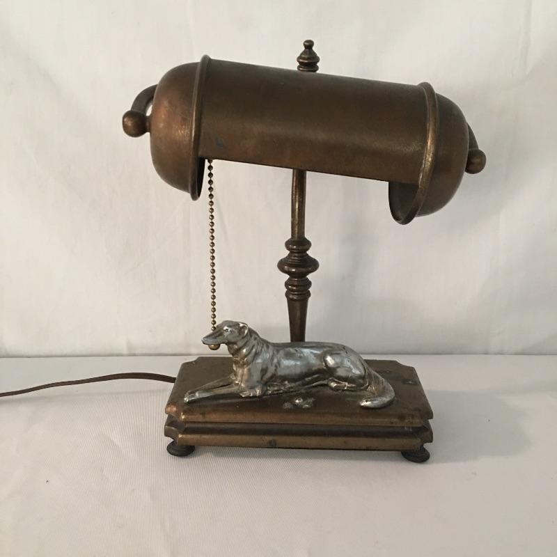 This vintage looking brass desk lamp has a regal looking greyhound attached to make you smile. Great piece to look at while you work!