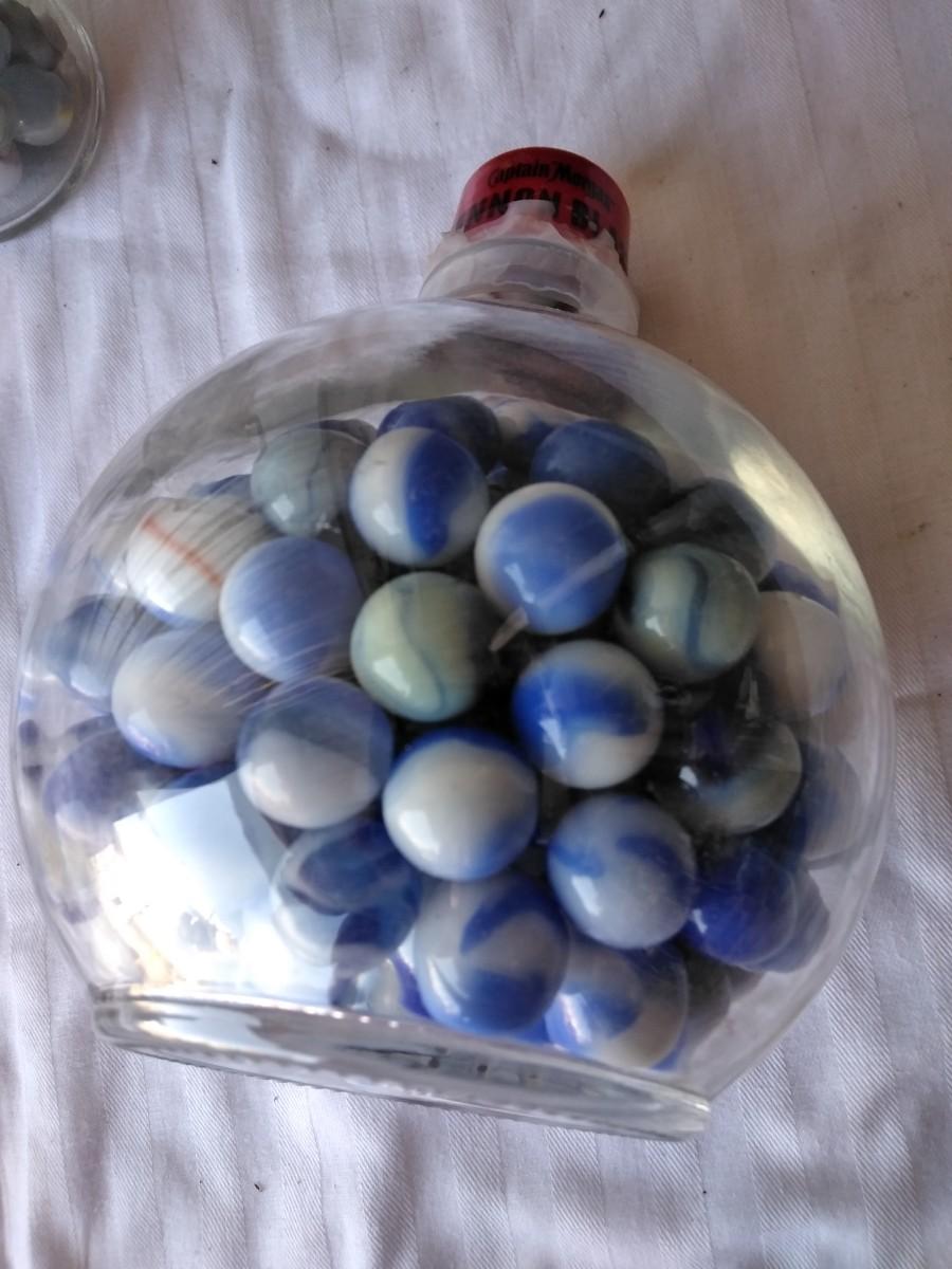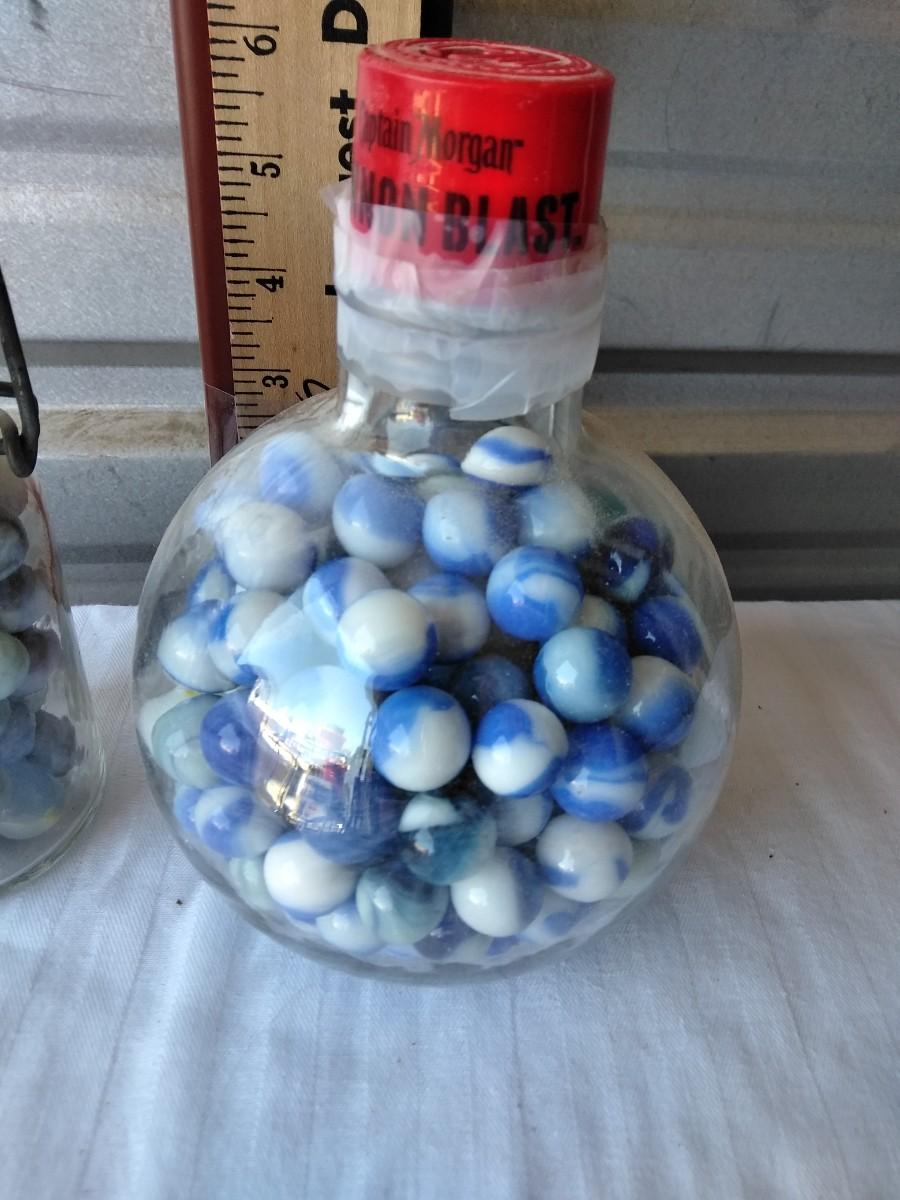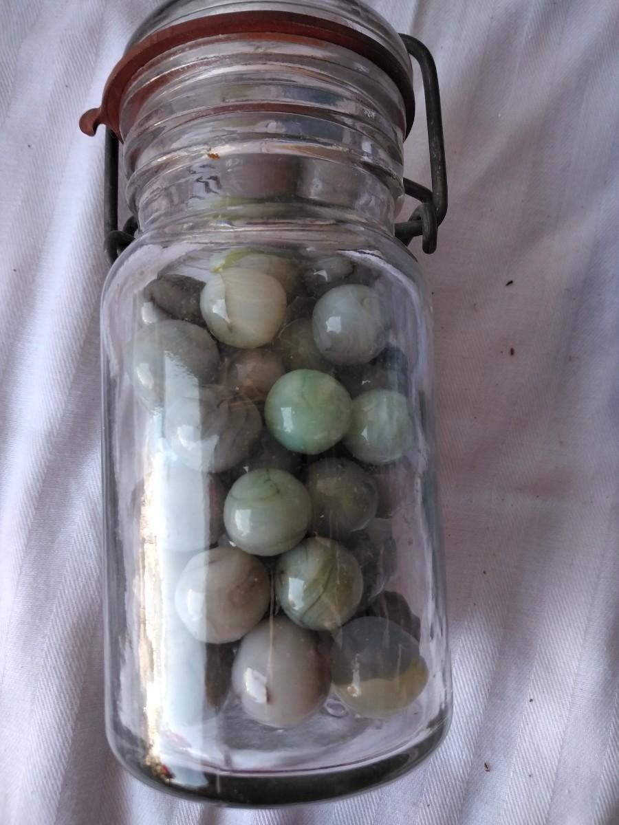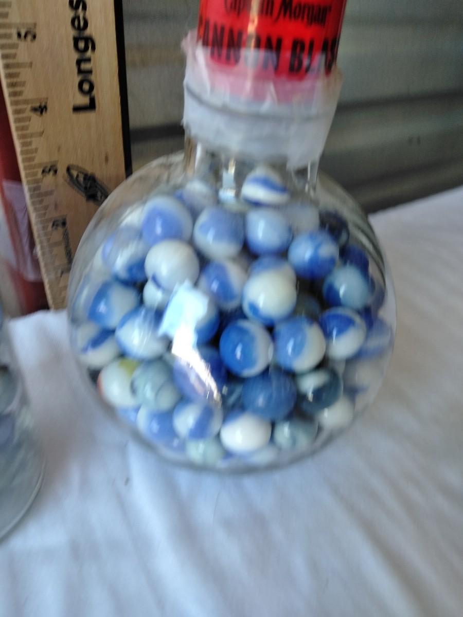 TALK ABOUT A COLLECTION OF MARBLES! TWO GLASS JARS WITH MARBLES!