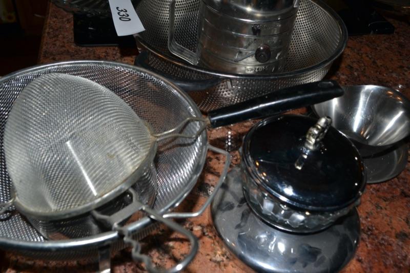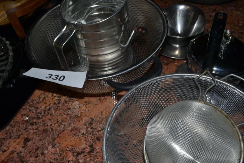 LOT 1330. COOKWARE AND STRAINERS