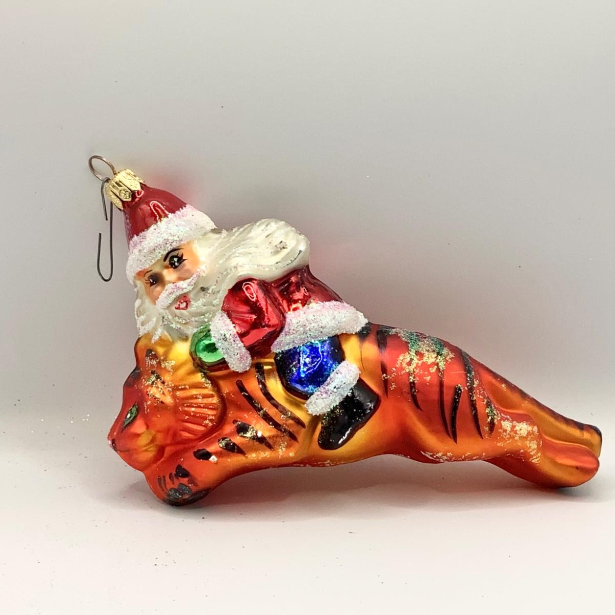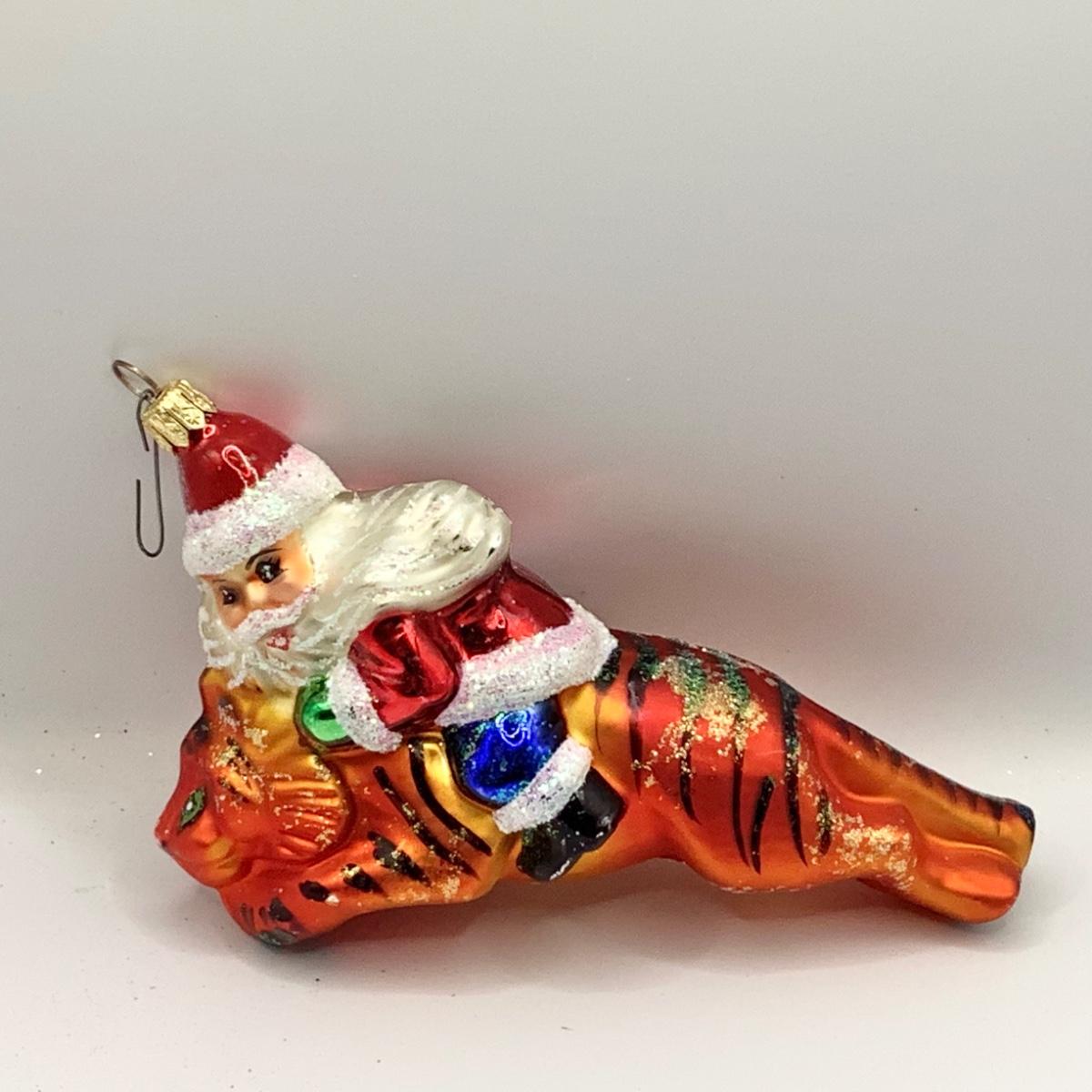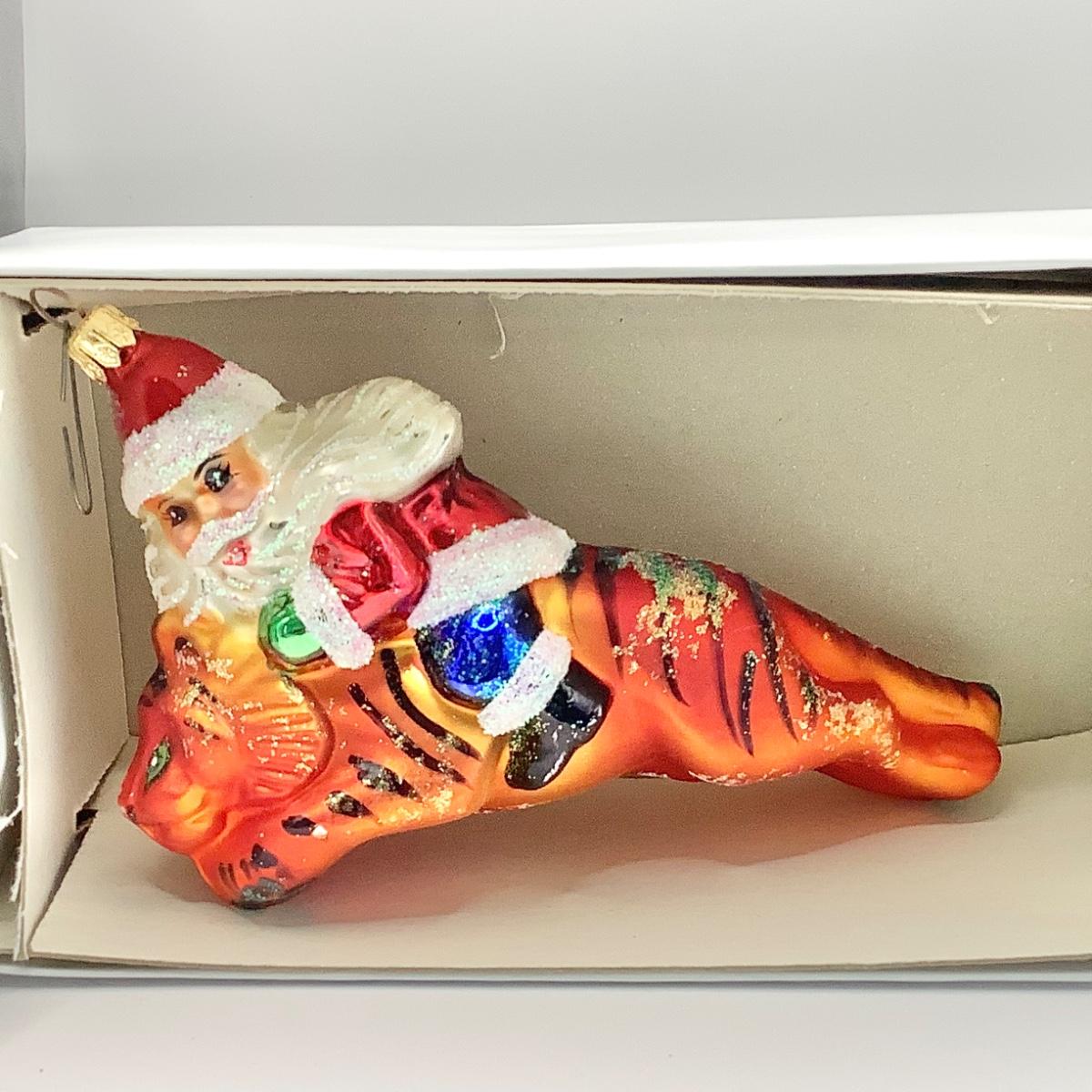 Christopher Radko Glass Ornament, Santa Riding Tiger, with box