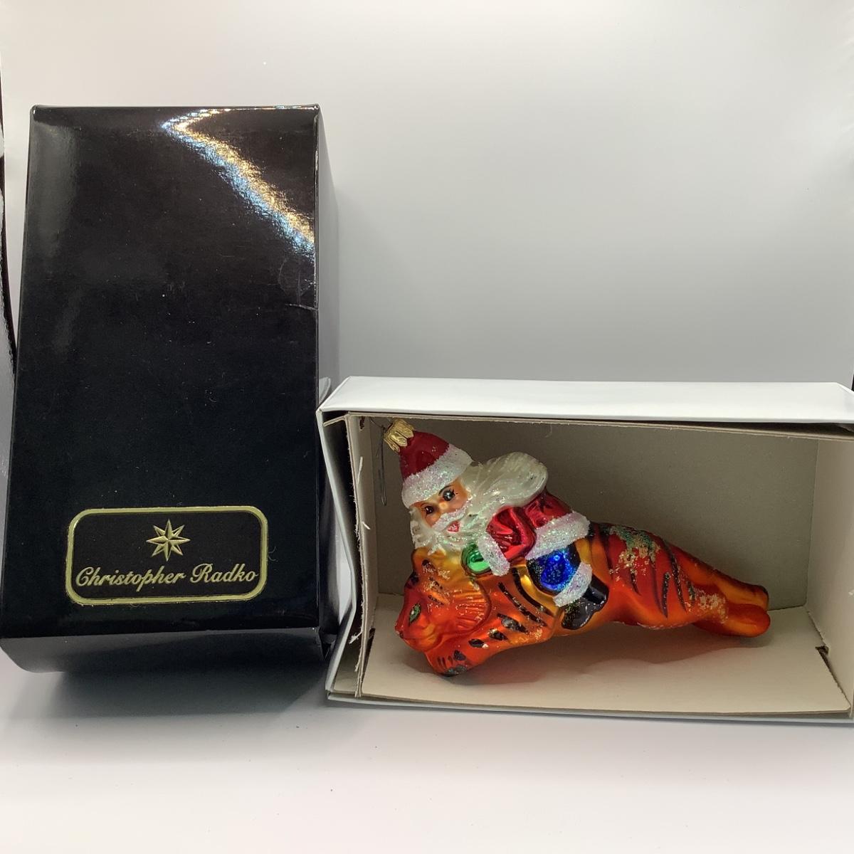 Lot 1336 Christopher Radko Glass Ornament, Santa Riding Tiger, with box