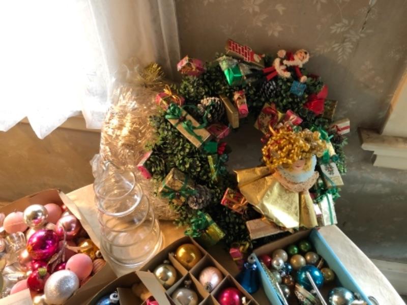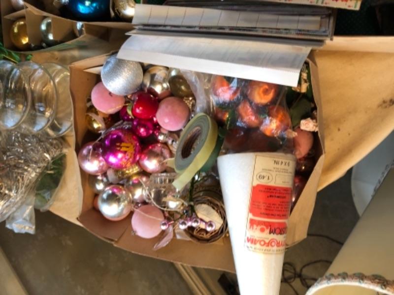 Lot 133B2. Miscellaneous Christmas, ornaments, ribbons, etc.--$20