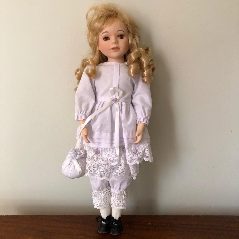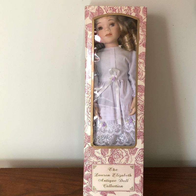 Lot includes a beautiful 1990 doll by Pauline numbered 1662. Amazing detail in the facial features, hair and period clothing. The Seymour Mann doll has a double stand and again such lovely detailed features. The Lauren Elizabeth Doll has original box. The lot also comes with an extra stand that is dented on one side see photos. Shipping available