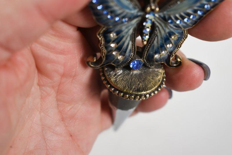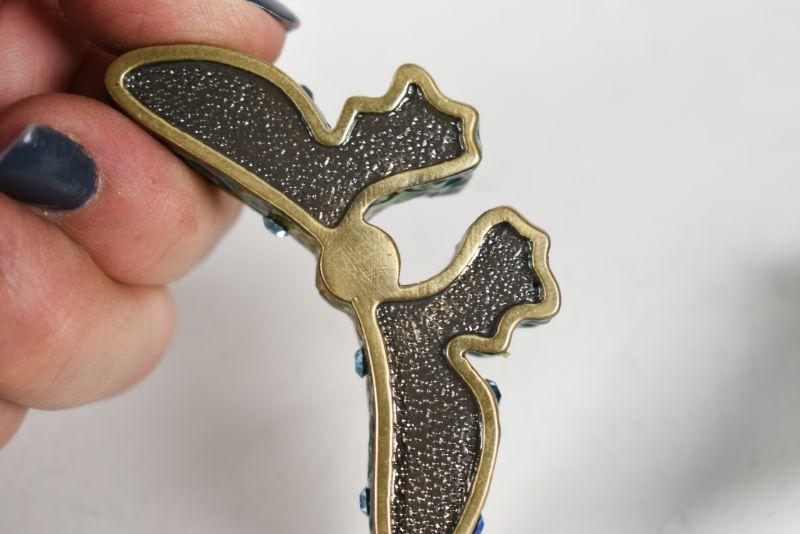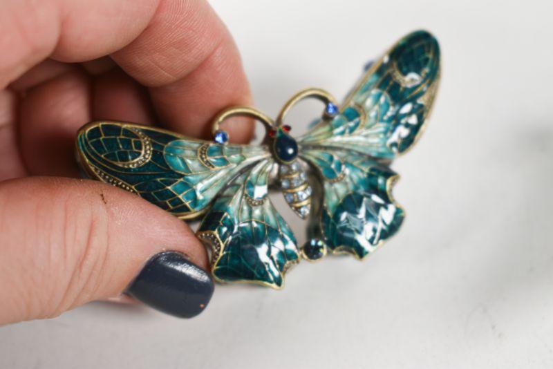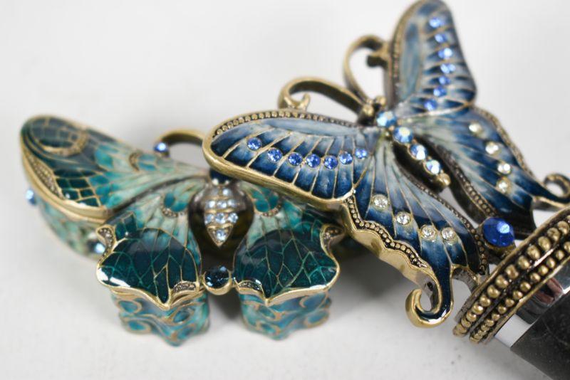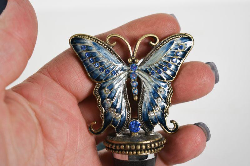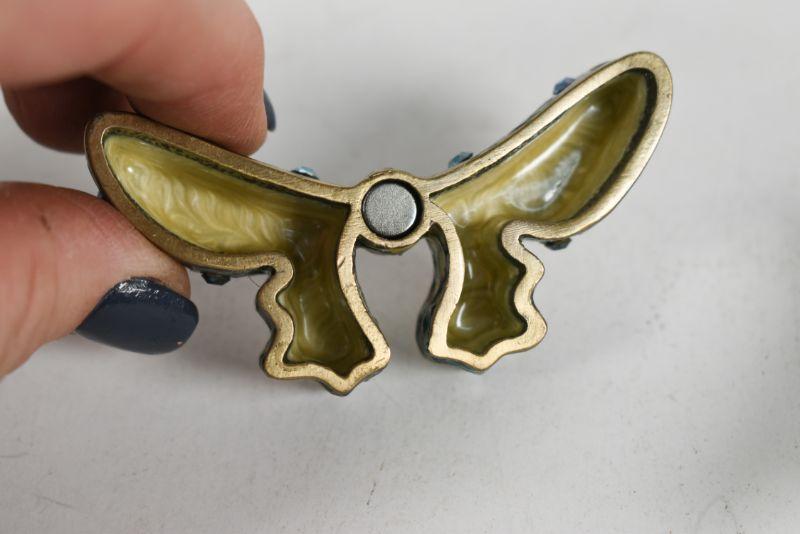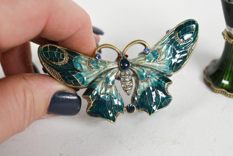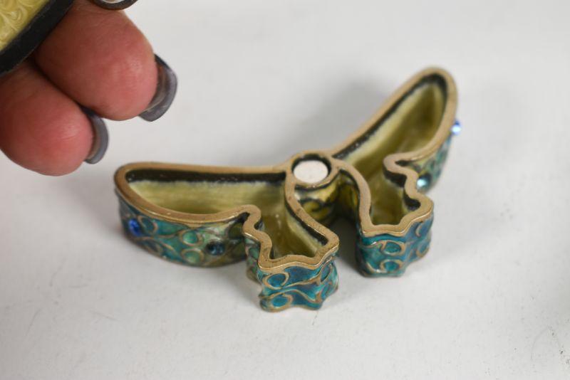 Enameled brass wine stopper and trinket box. Both have rhinestones. **Please read Terms and Conditions before placing a bid. Pick up is Sunday, December 22 from 11am to 3pm or Monday, December 23 from 4pm-7pm in Mantua, NJ. All sales are final. All sales are as is, where is. Please review all photos. Props are not included. Measurements are approximate.