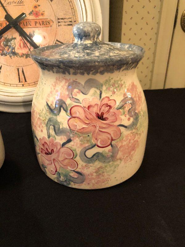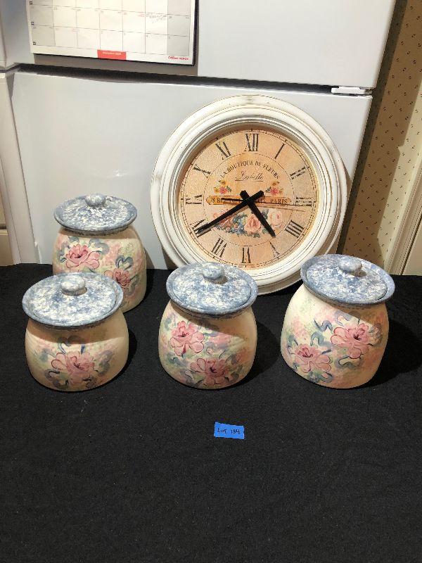Lot 134 - 4 Piece Kitchen Canister Set and Clock