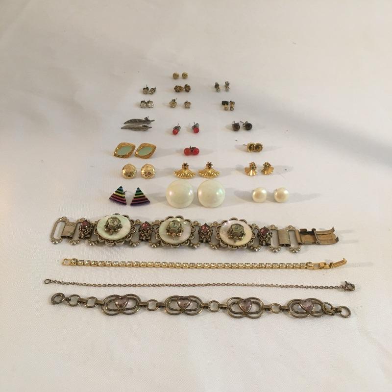 Look at this eclectic array of nineteen pairs of post earrings for any occasion. Also includes four bracelets in four distinct styles that each measure 7.5”.