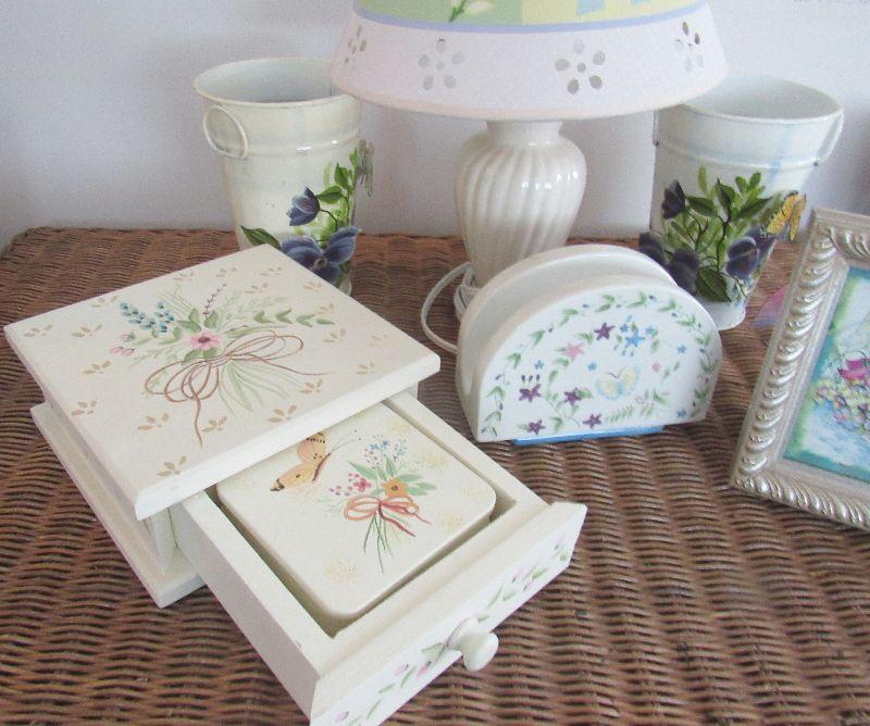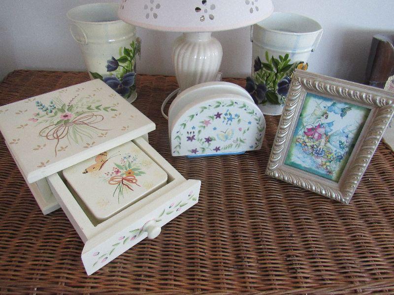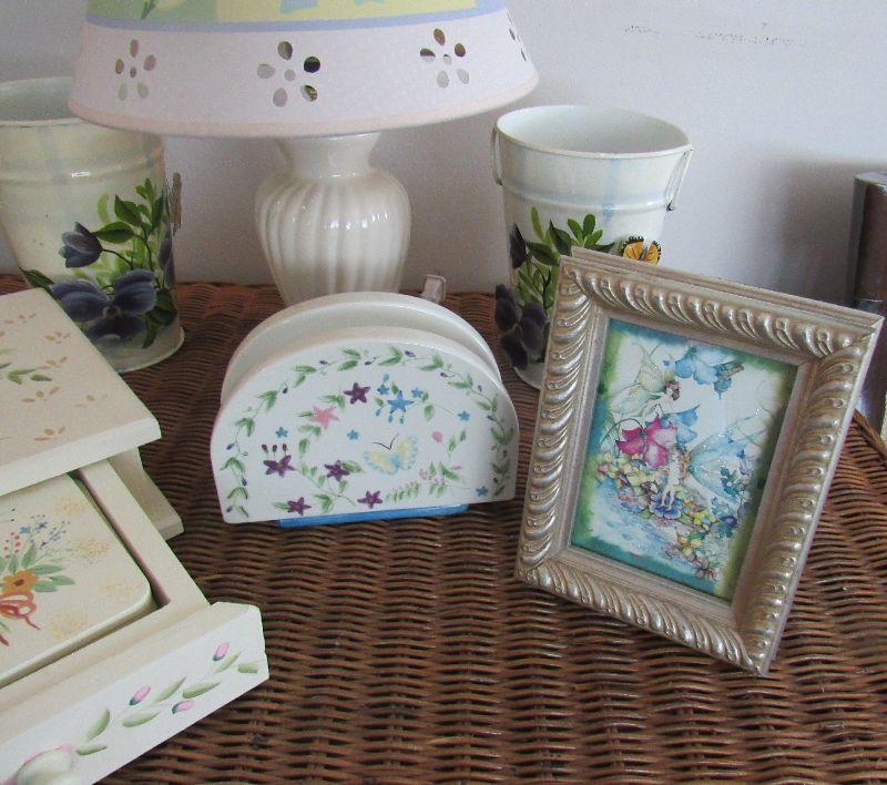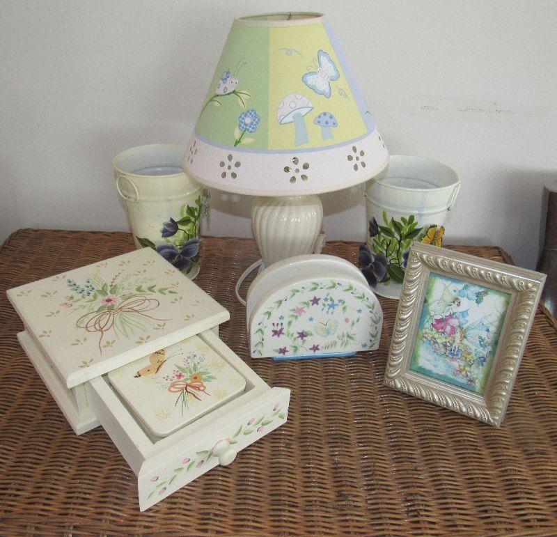 Lot 134 - Large Butterfly Lot, Butterfly Lamp, Butterfly Napkin Holder, Butterfly coasters in butterfly holder, Butterfly angel picture Etc.