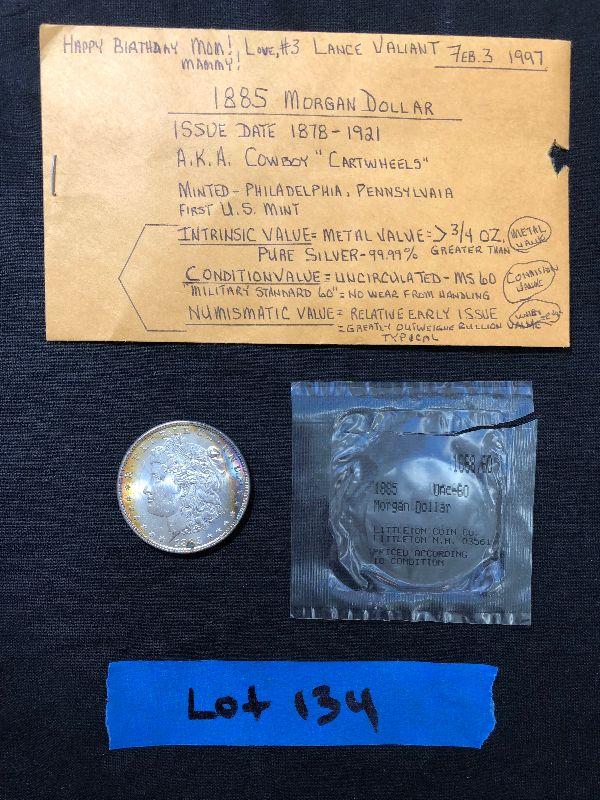 Lot 134 - MS60 1885 Morgan Dollar Silver Coin (Un-circulated 3/4 oz)