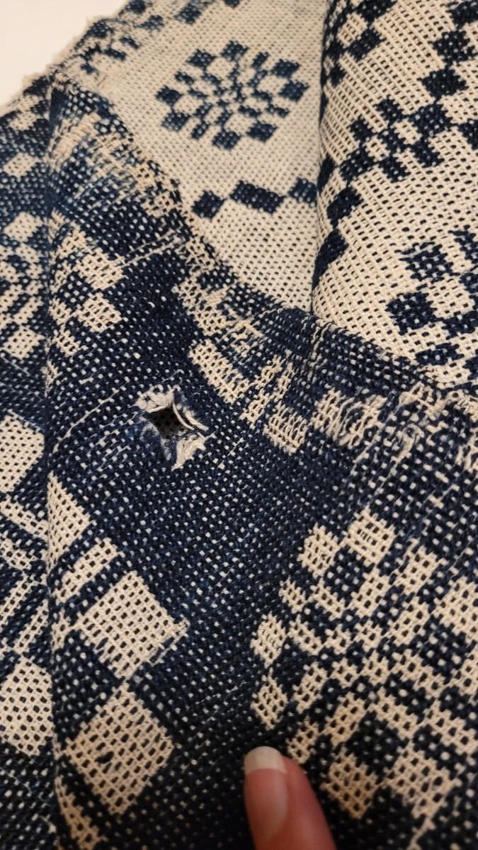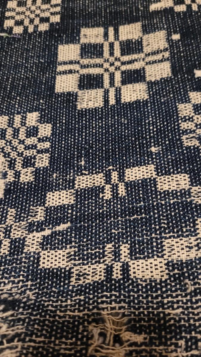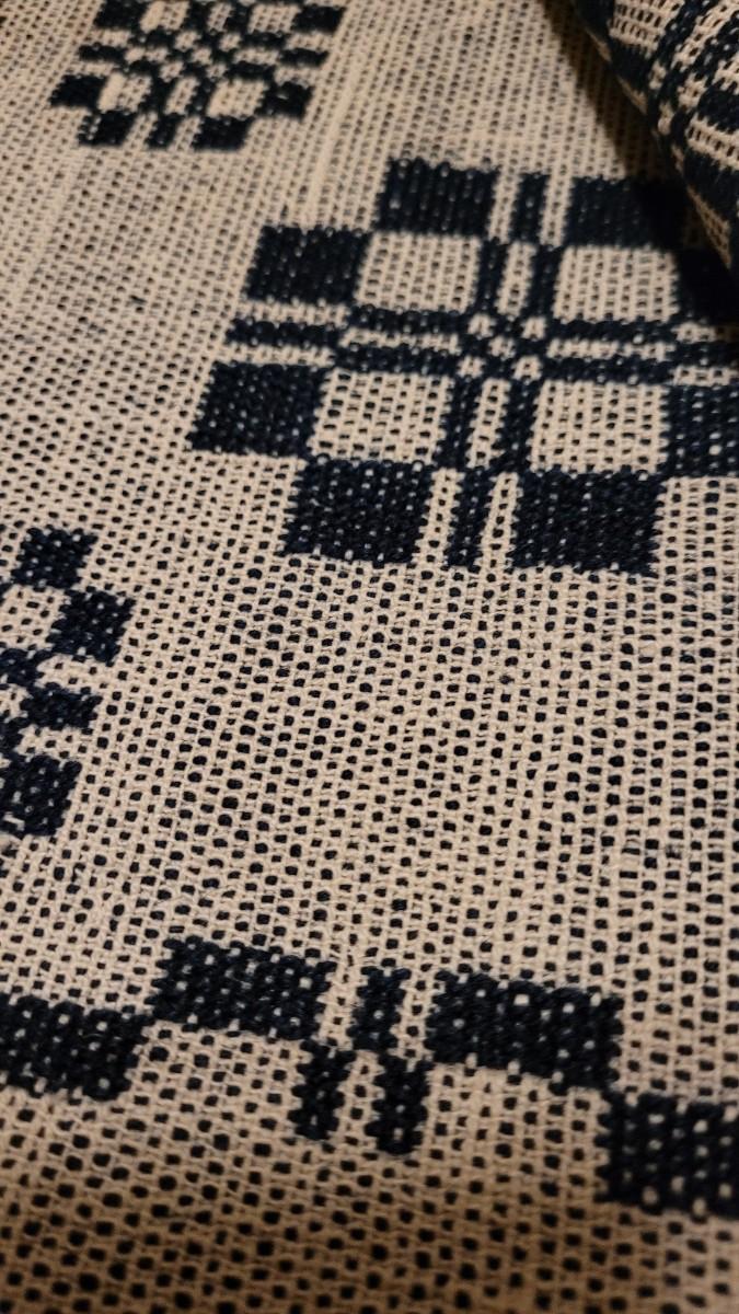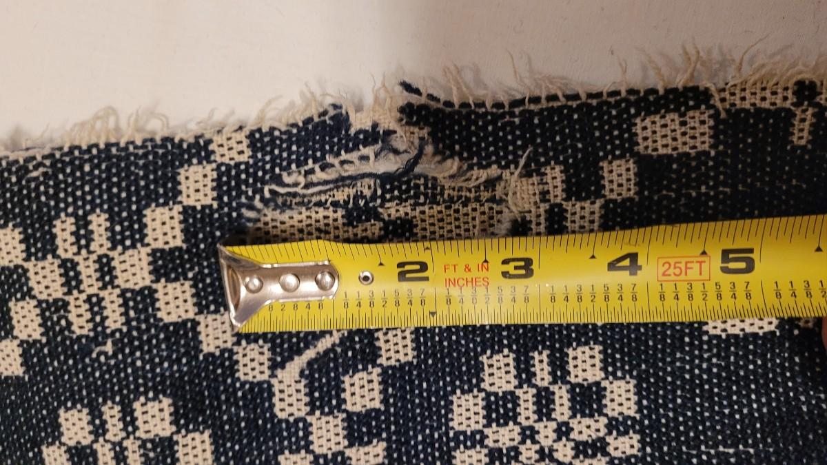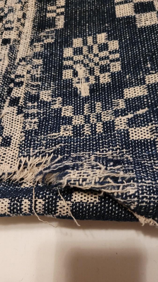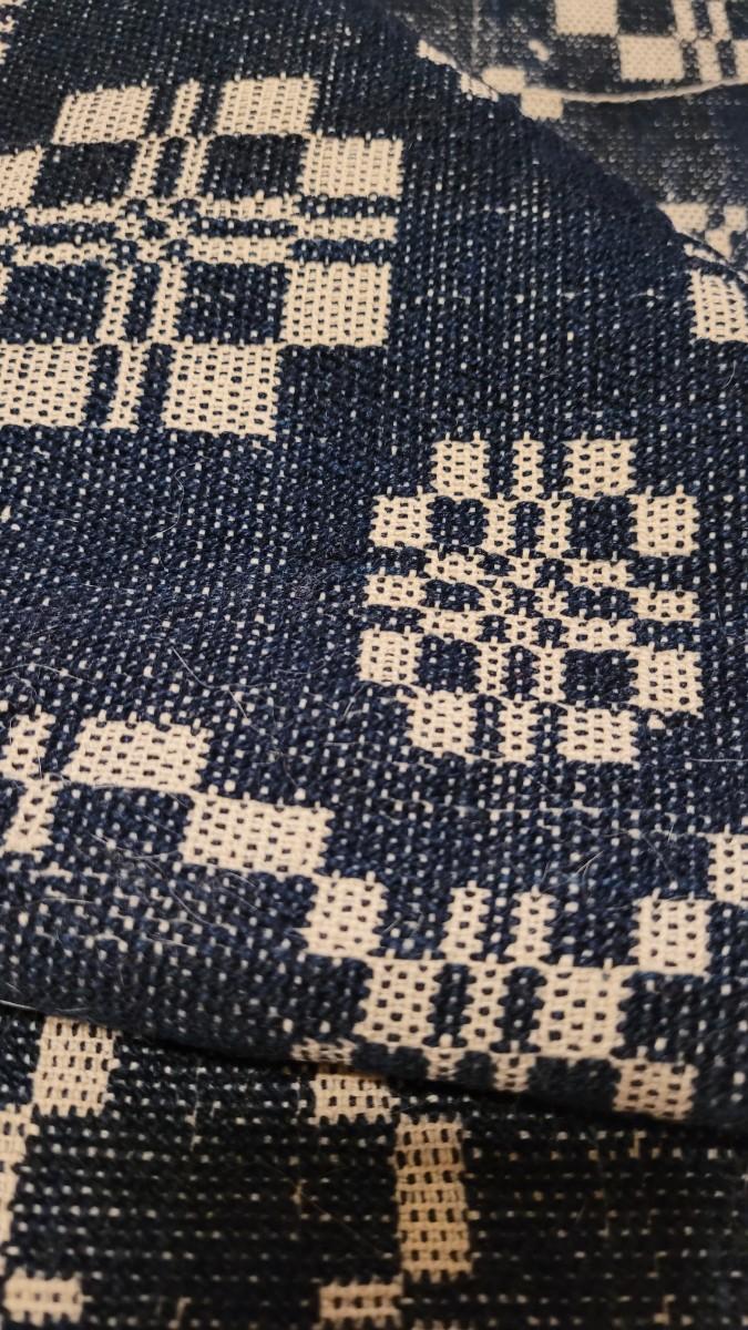 Lot 134: (2) Antique 19th Century Dark Blue & Aged White Jacquard Coverlet  92" × 42"