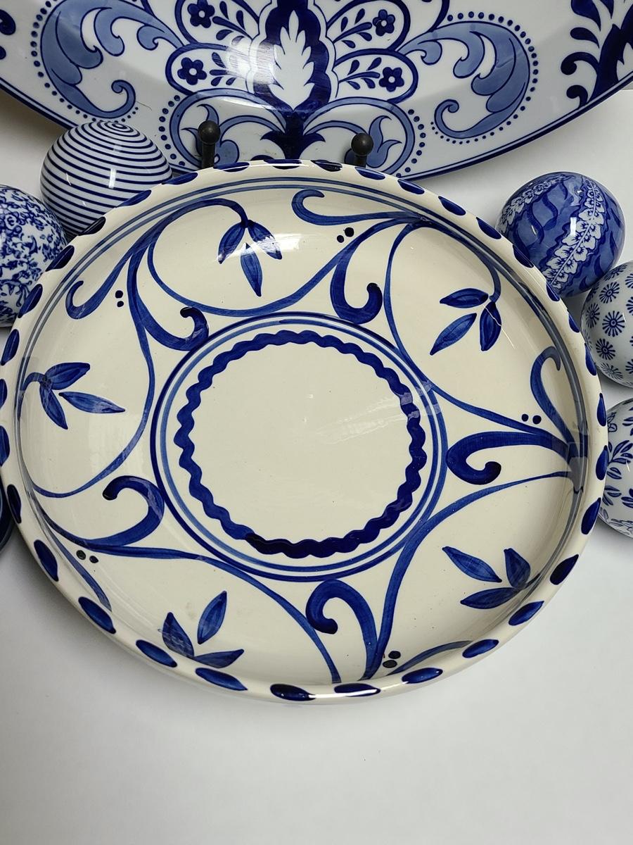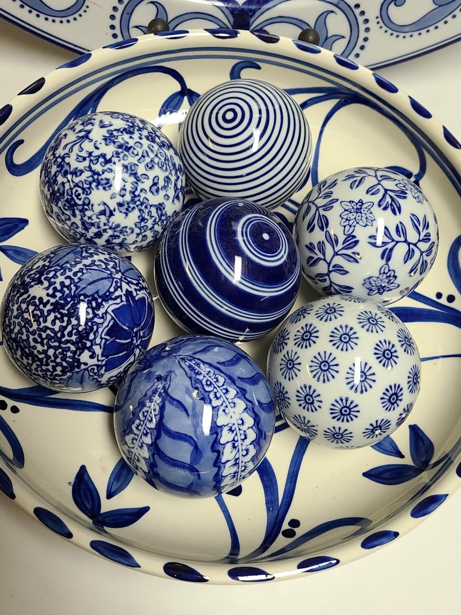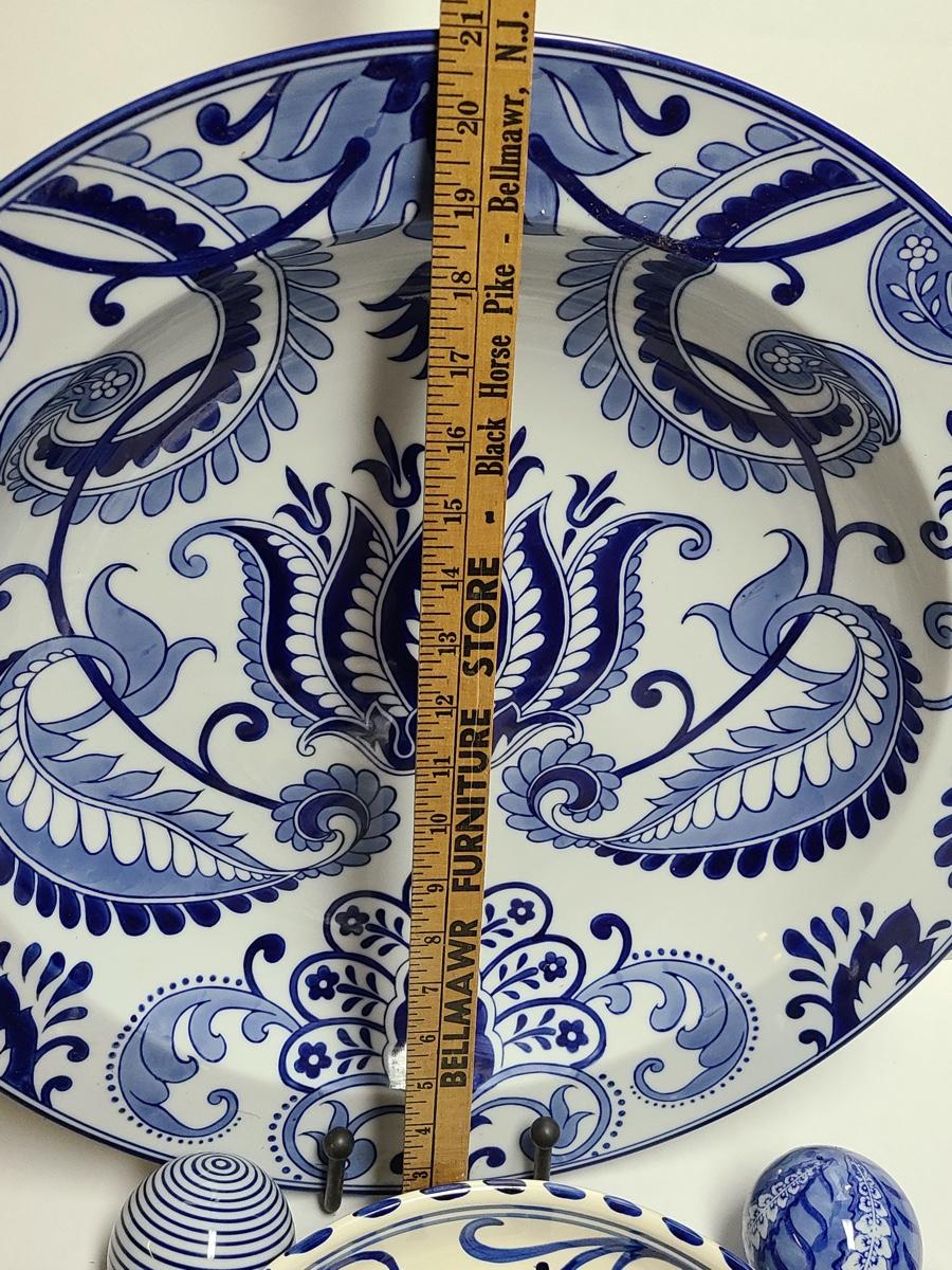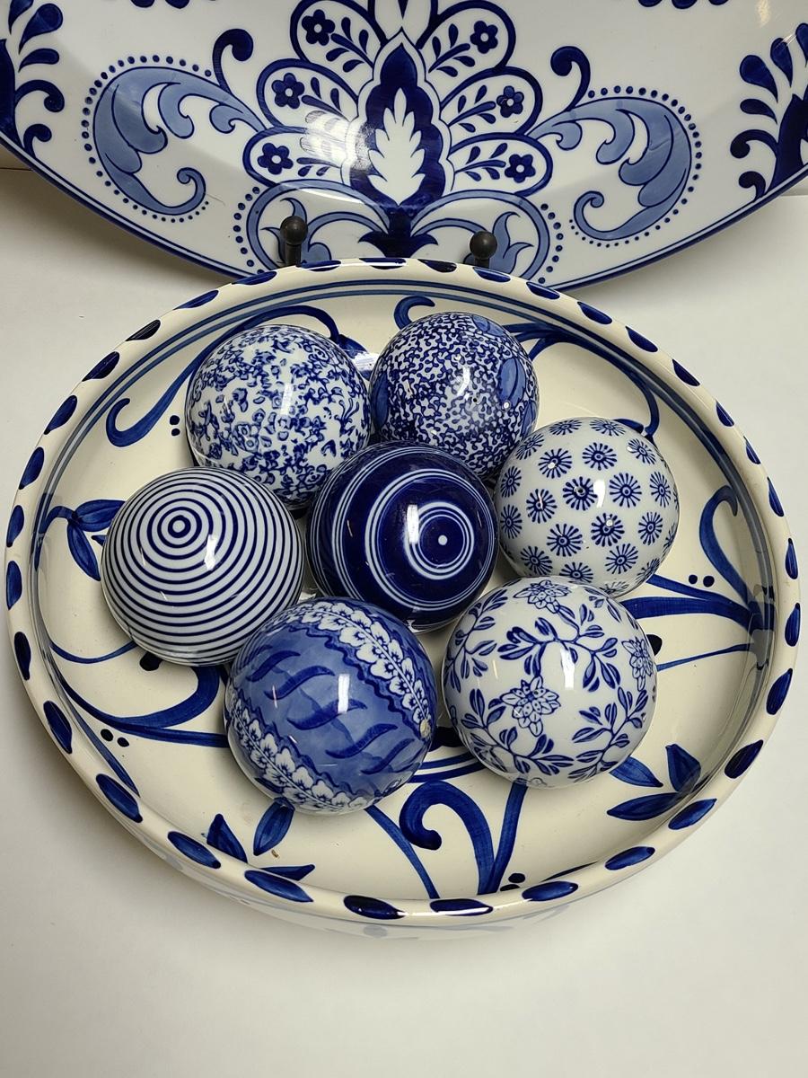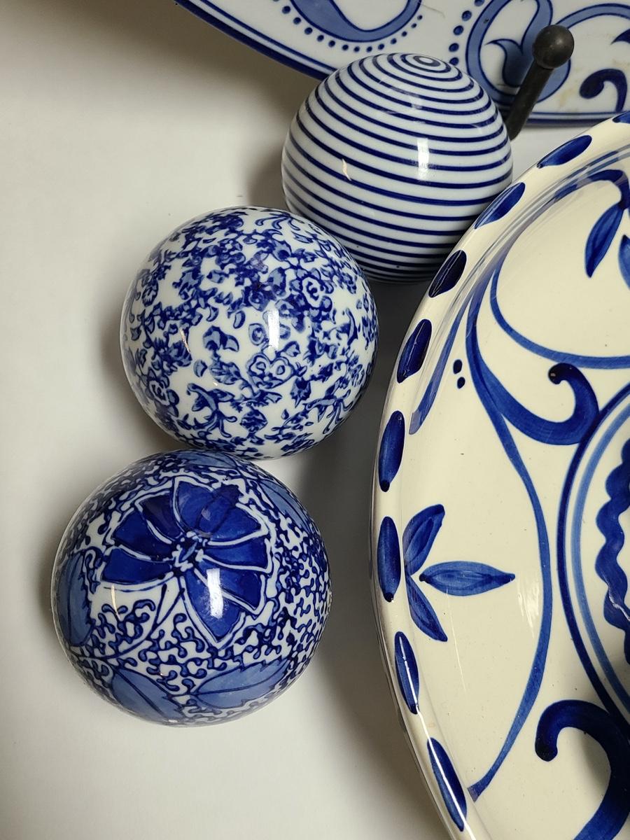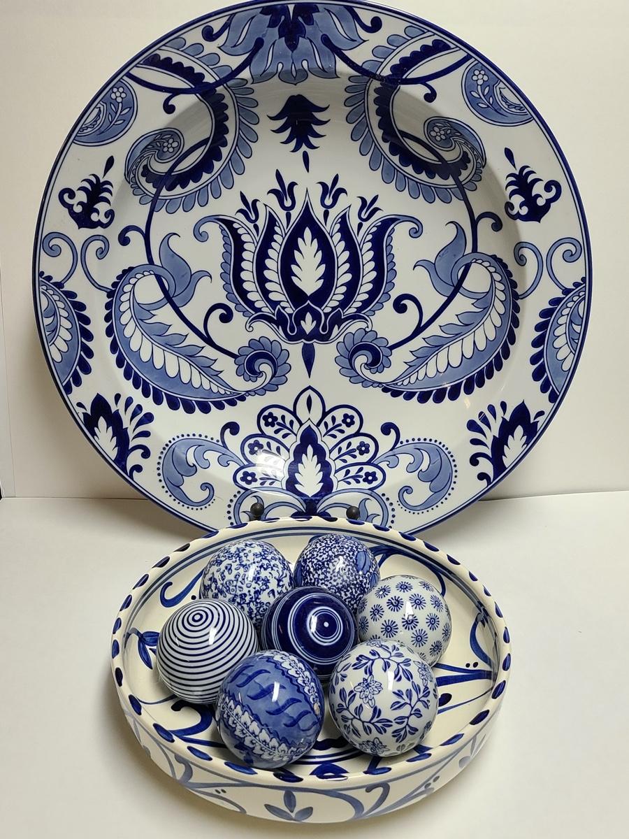 Lot 134: Pier One Bowl with Blue/White Balls and Hanging Wall Art Oversized Plate