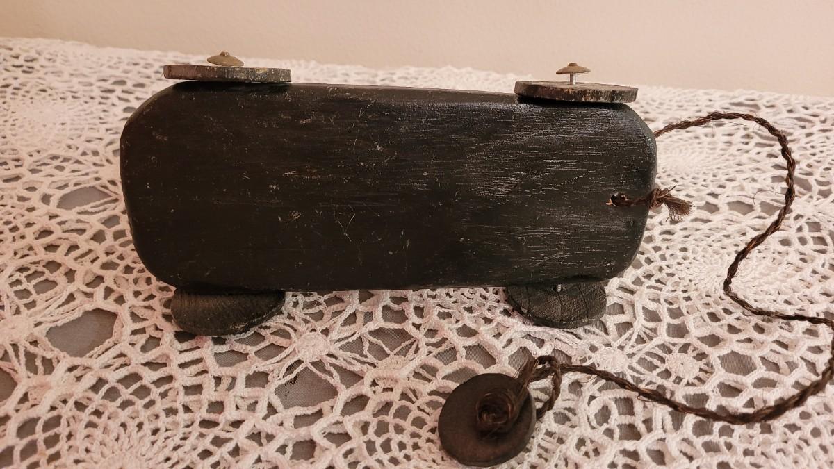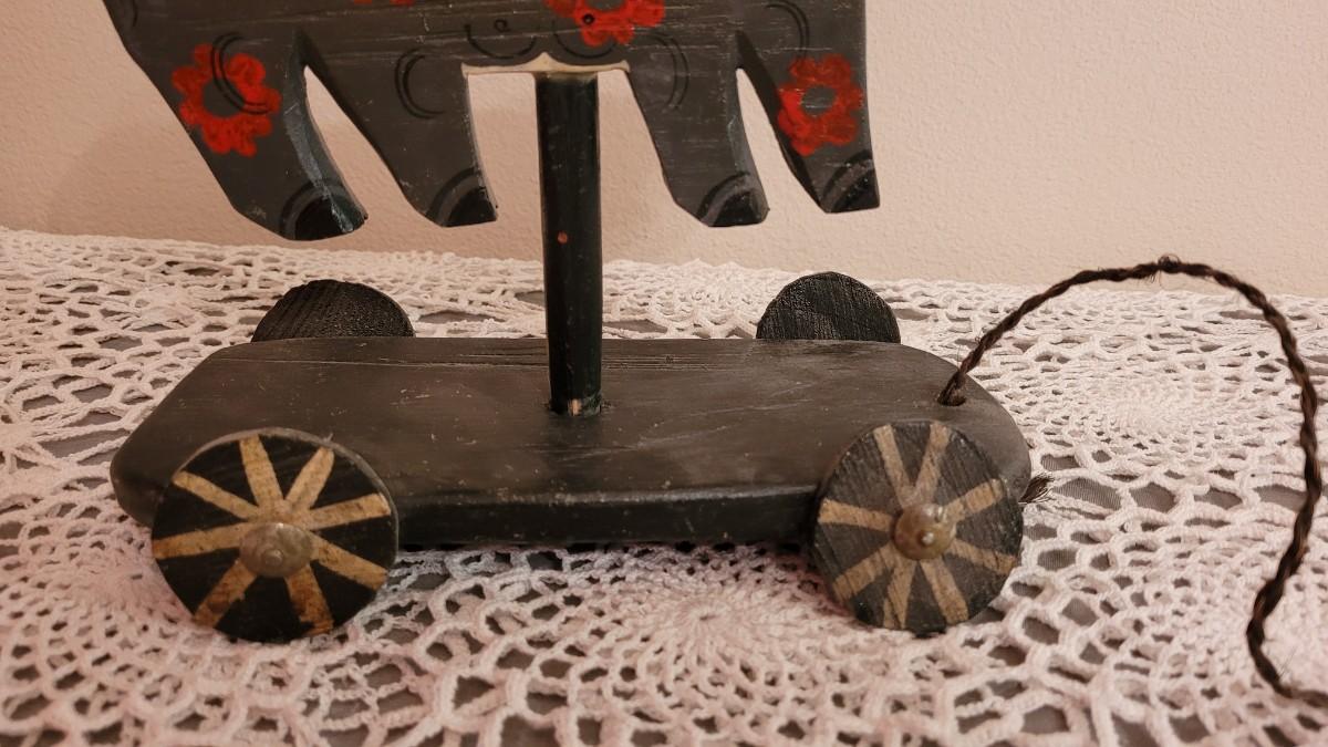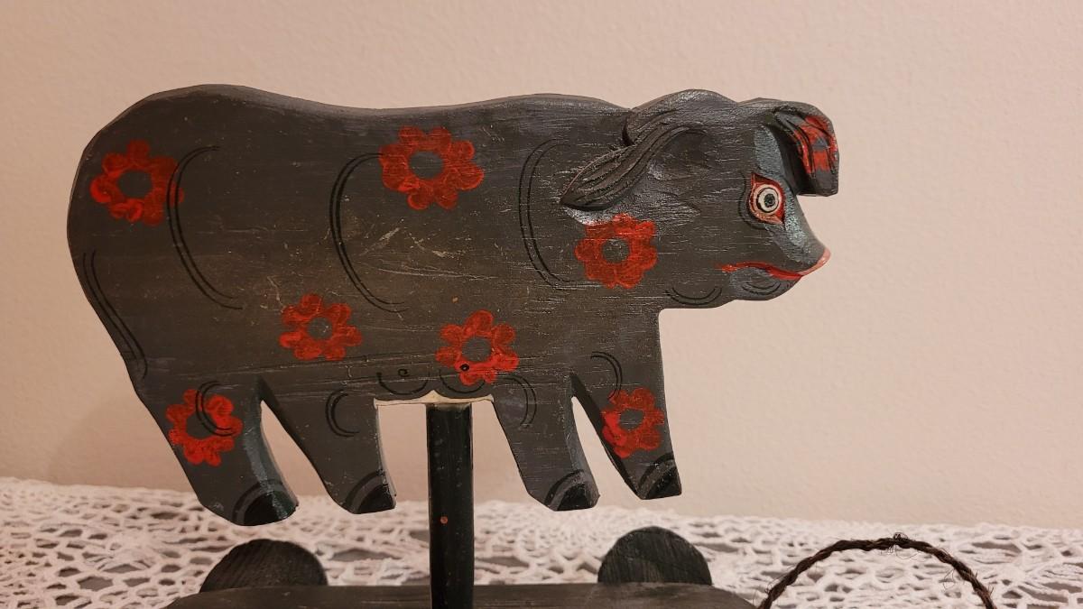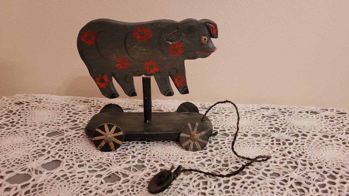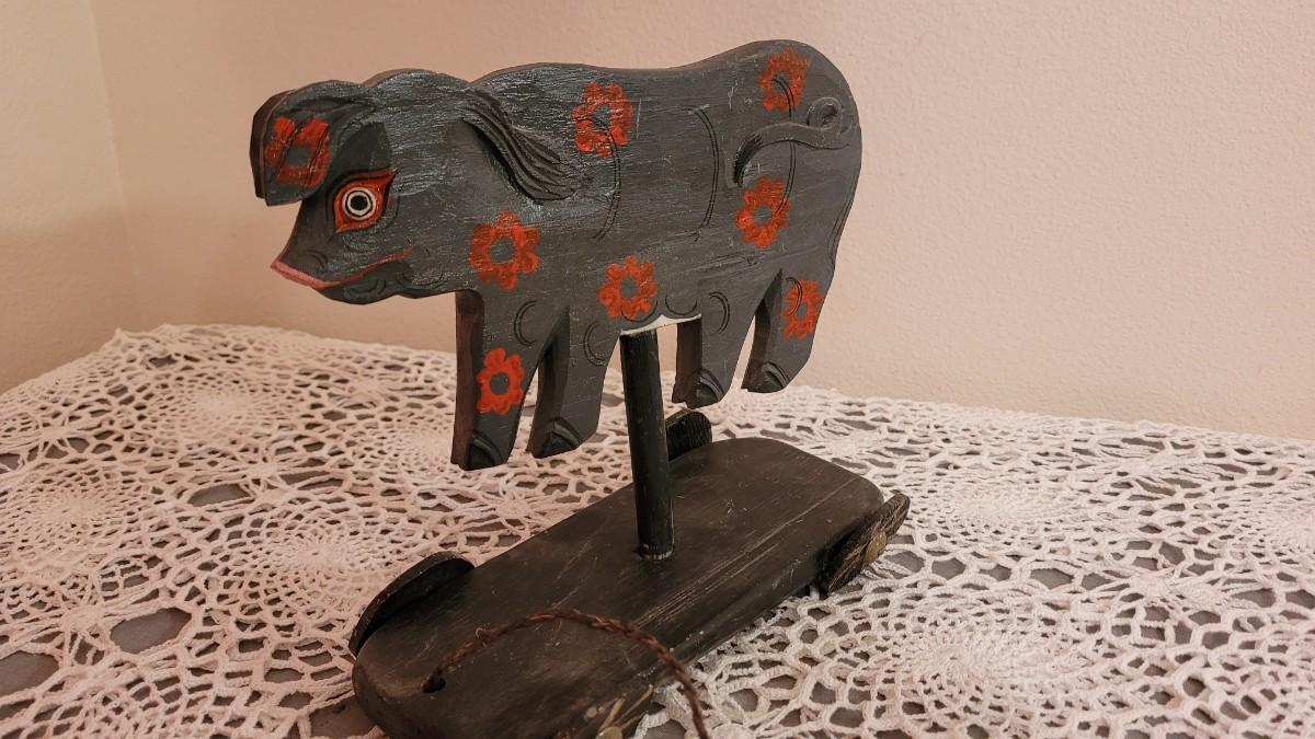 Lot 134: Vintage Mexican Folk Art Wood Pull Toy Blue Pig