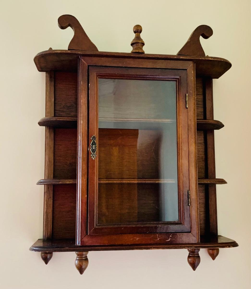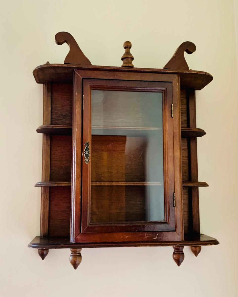 Vintage Small Wooden Display Cabinet (14 x 5 x 17 ) hanging or stand alone