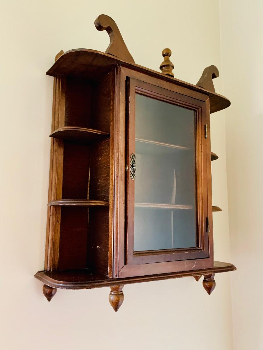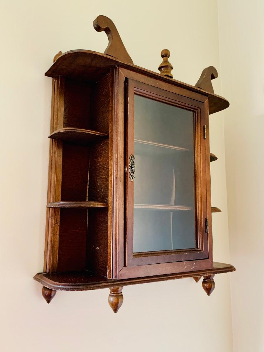 Lot 134: Vintage Wooden Curio/Display Cabinet (Wall Mount or Stand Alone)
