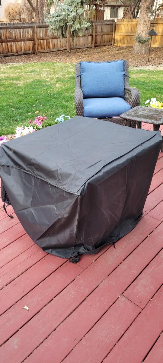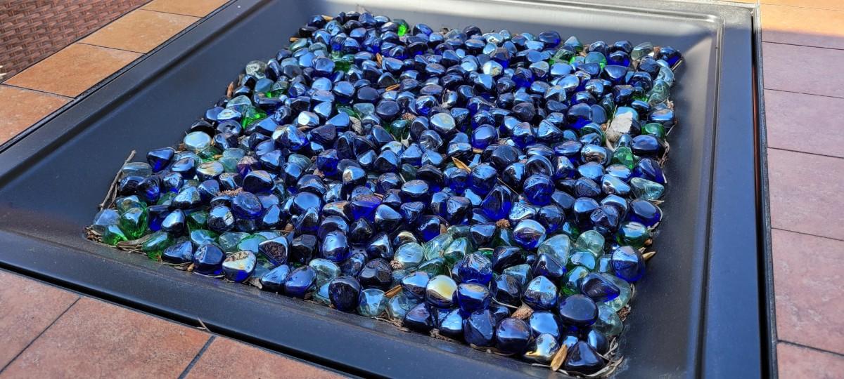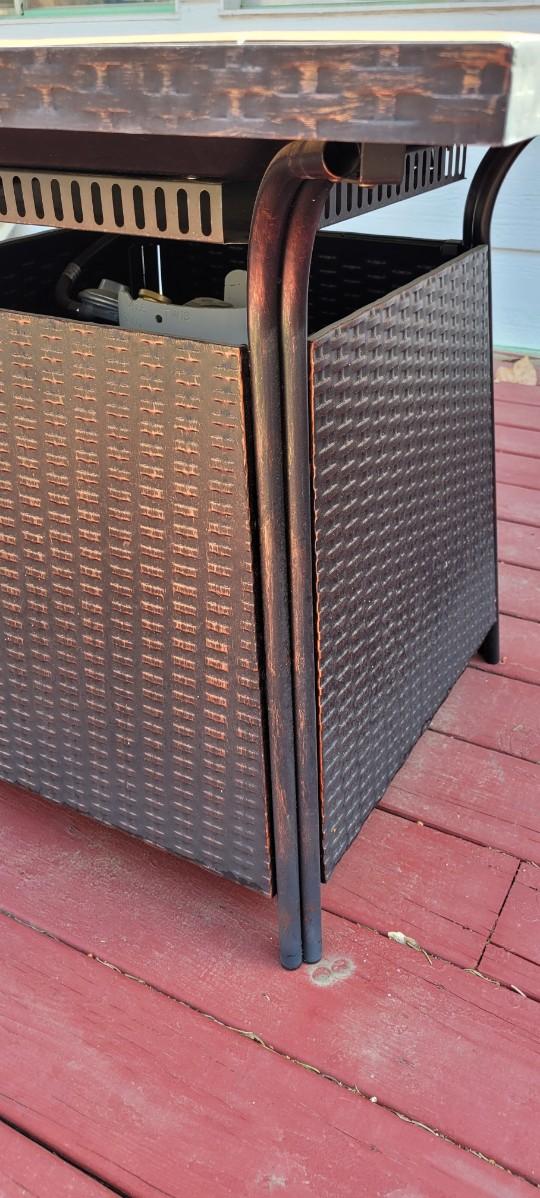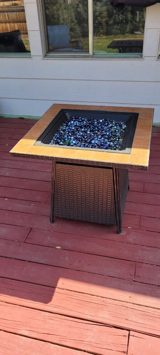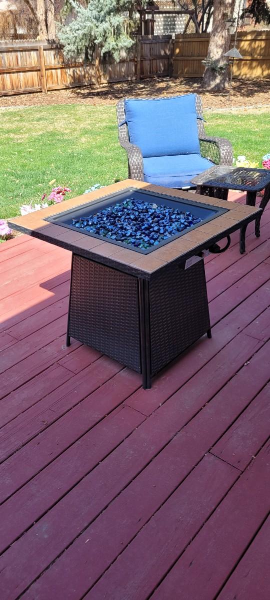 This Patio Fire Pit feature already has the rocks and is ready to use for those night Spring/Summer Colorado nights. Will need a new tank of LP Gas. Comes with extra glass.