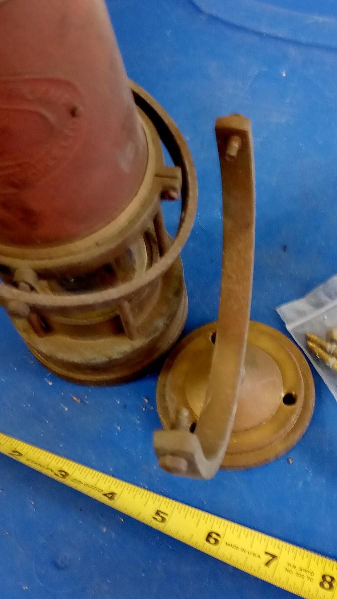 OLD BRASS LANTERN HAS AN INTERESTING WALL MOUNT