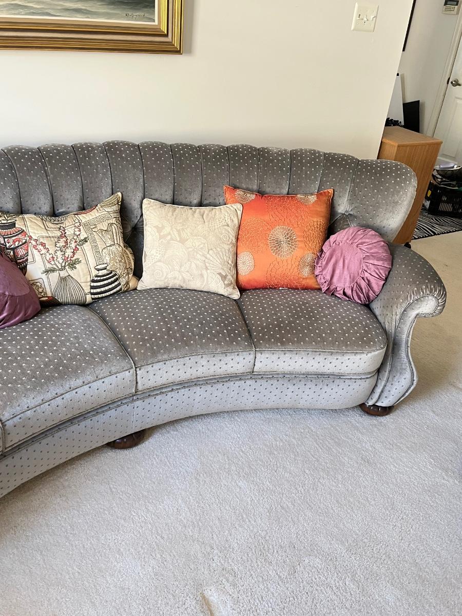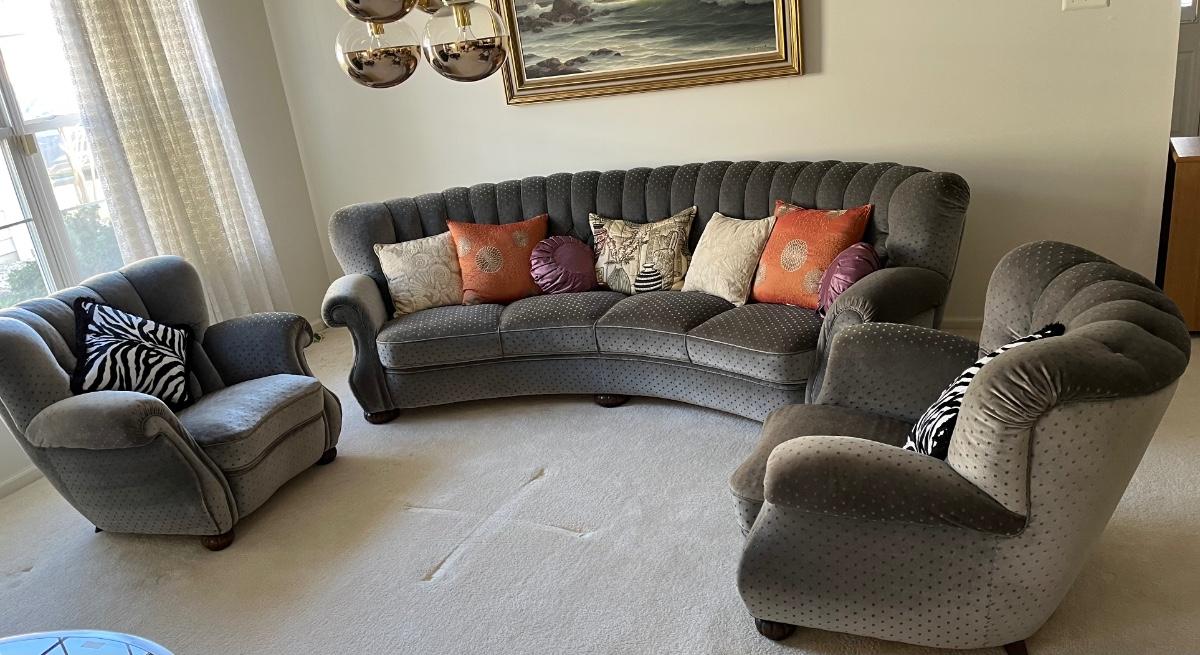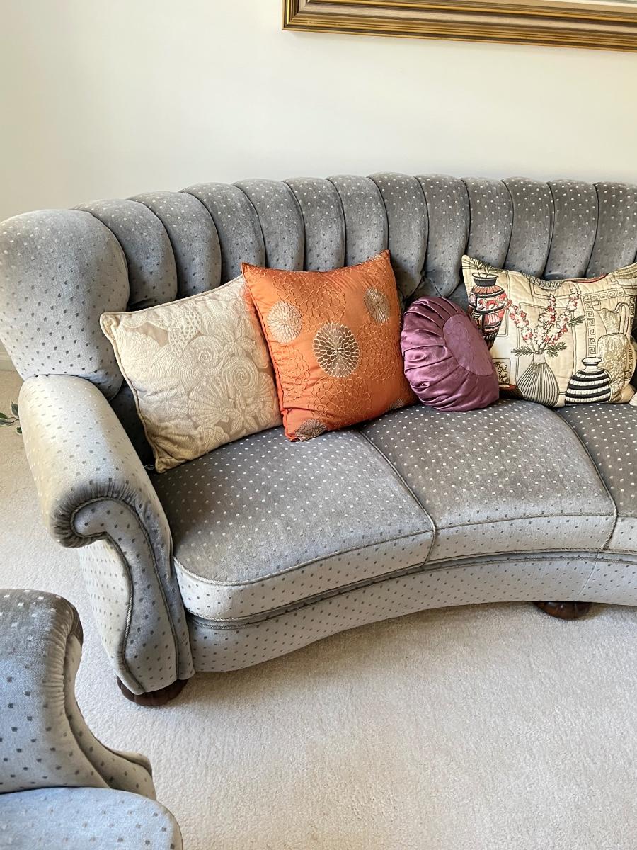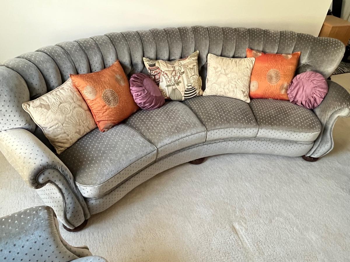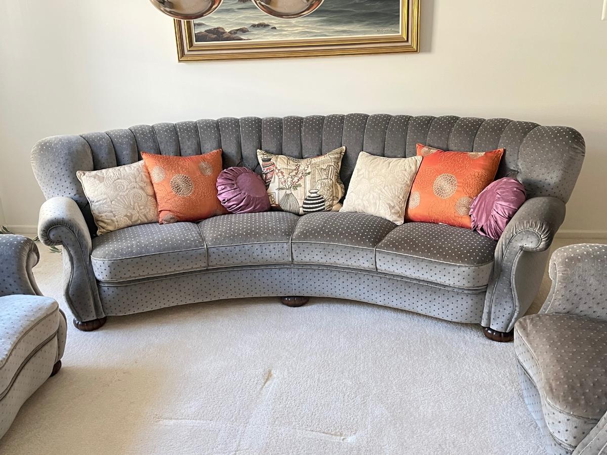MOHAIR LOT 134L: Four-Seat Couch and Two Matching Chairs w / Throw Pillows