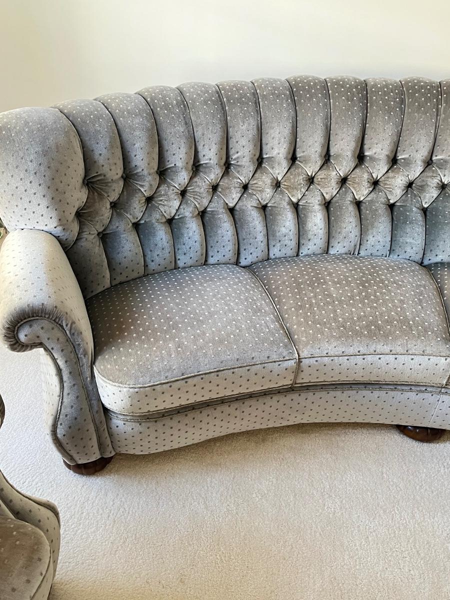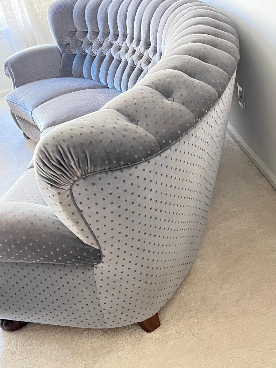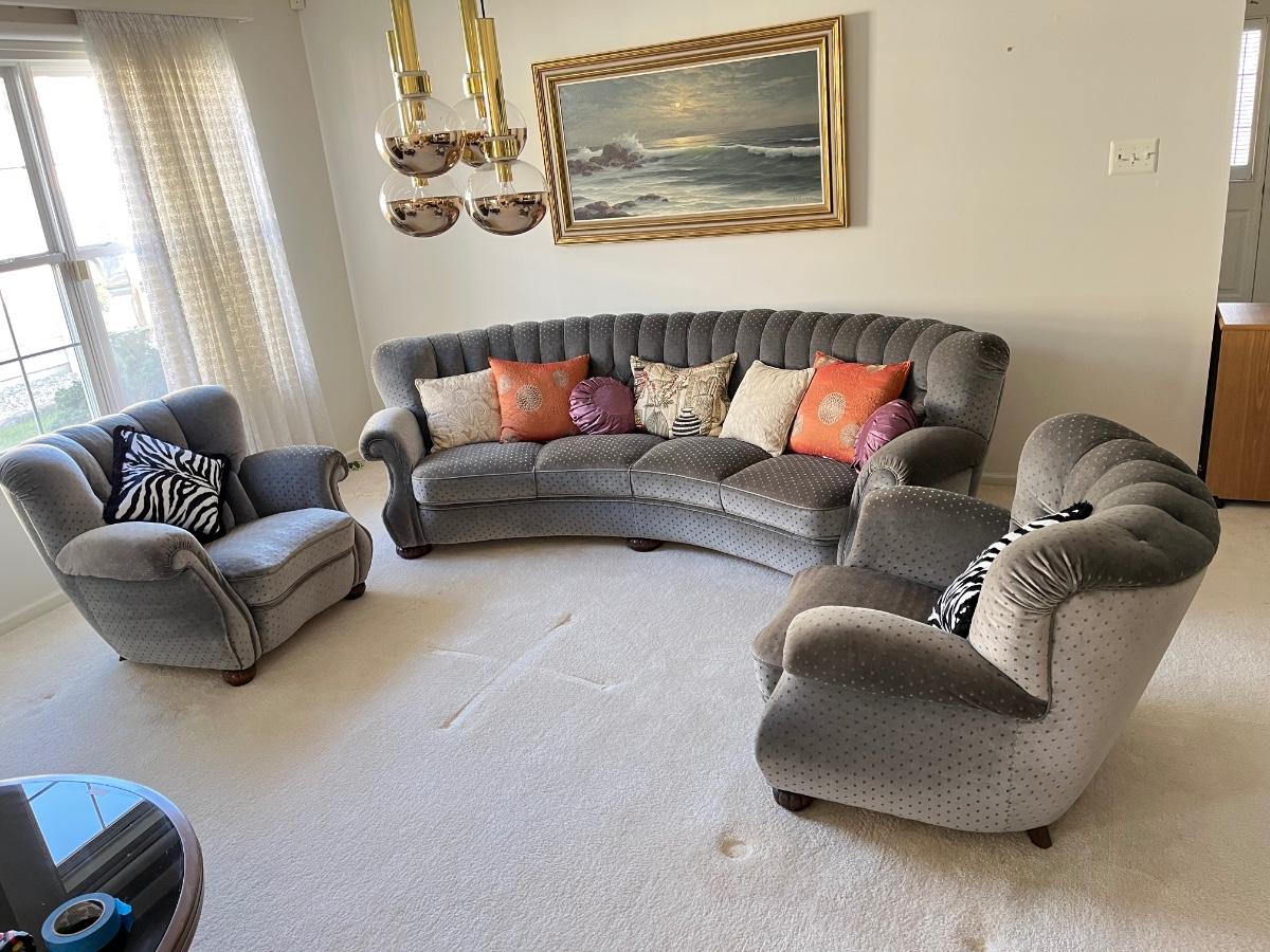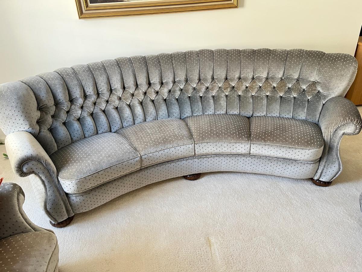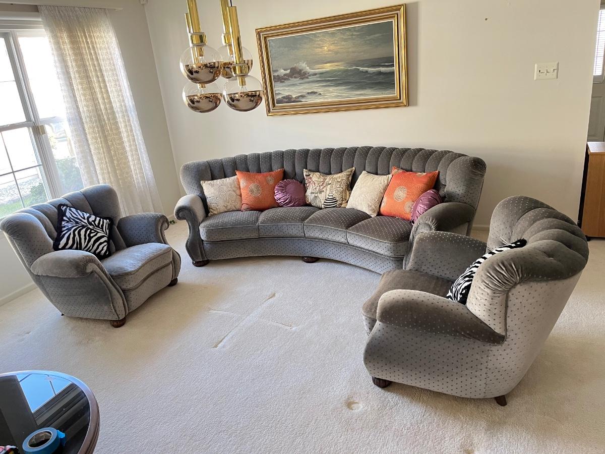 MOHAIR LOT 134L: Four-Seat Couch and Two Matching Chairs w / Throw Pillows
